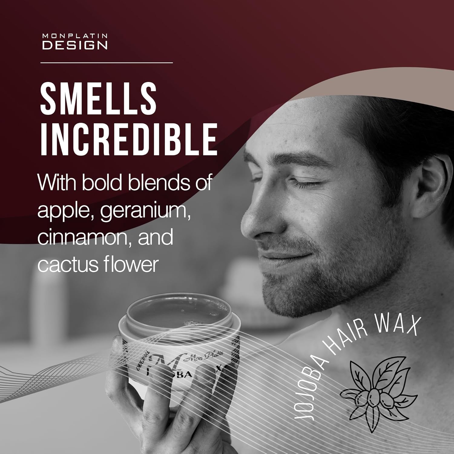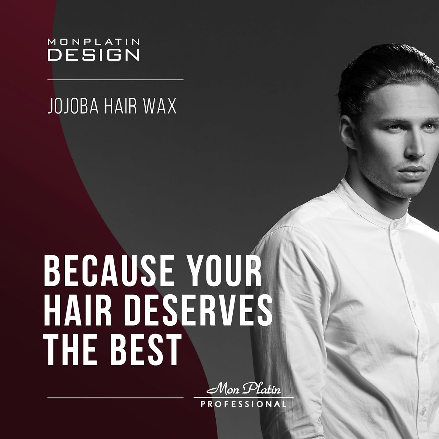 - NOURISHING TREATMENT: Say goodbye to dry, lifeless locks! Our Jojoba Hair Wax is not just your average styling product; it's a nourishing treatment that showers your hair and scalp with organic jojoba extract goodness and smells divine, it's the ideal choice for your daily styling routine. Mon Platin men’s hair wax is easy to rinse out and leaves no sticky or greasy feeling, No residue, just well managed hair.