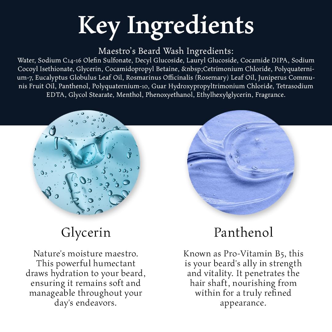 Maestro's Classic BEARD WASH | Anti-Itch, Deep Cleaning, Non-Drying, Fully Hydrating Gentle Cleanser For All Beard Types & Lengths- Spirited blend, 4 Ounce