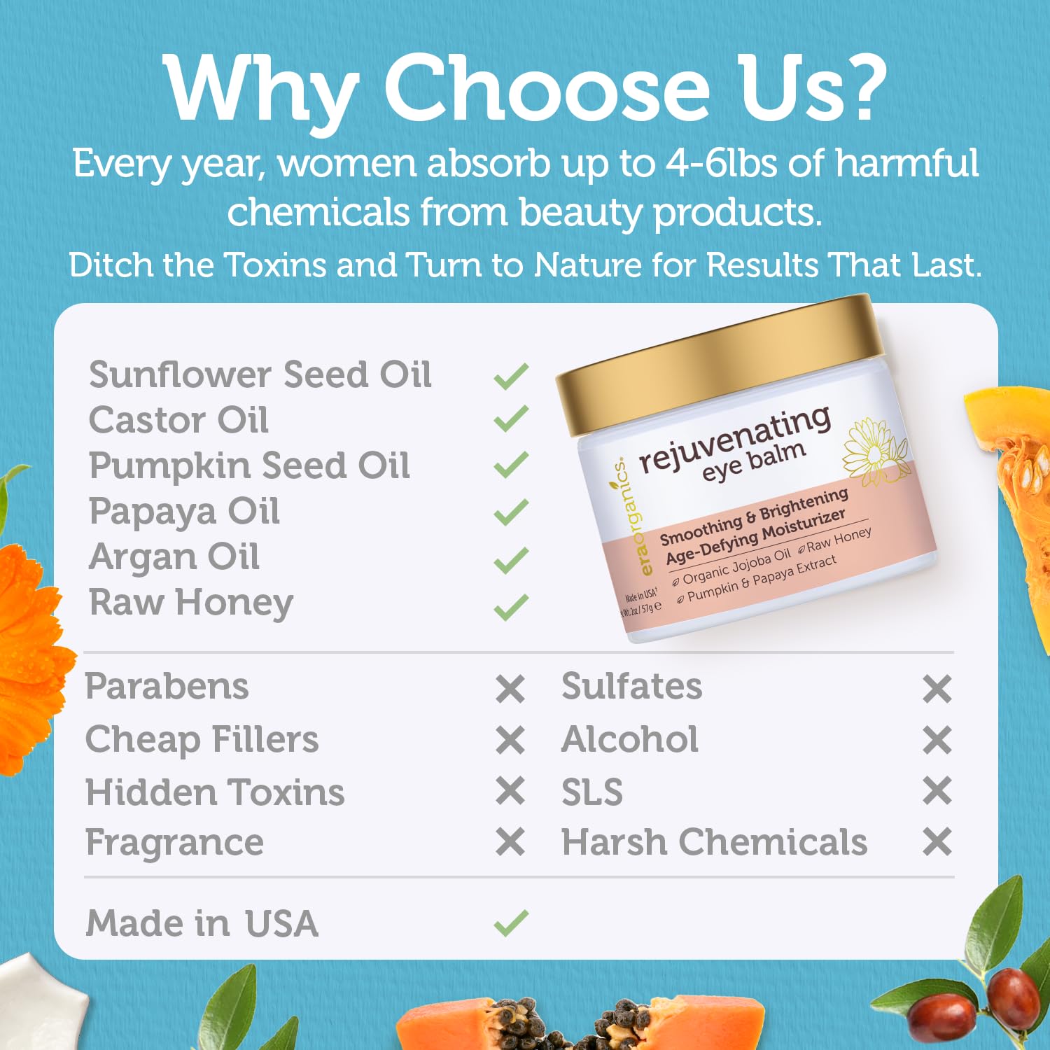 - Safe As It Is Effective. Our natural and organic eye cream is hypoallergenic, Non GMO, No animal cruelty, parabens, harsh chemicals and fragrances. Perfect eye cream for women and men with sensitive skin looking for clean beauty.