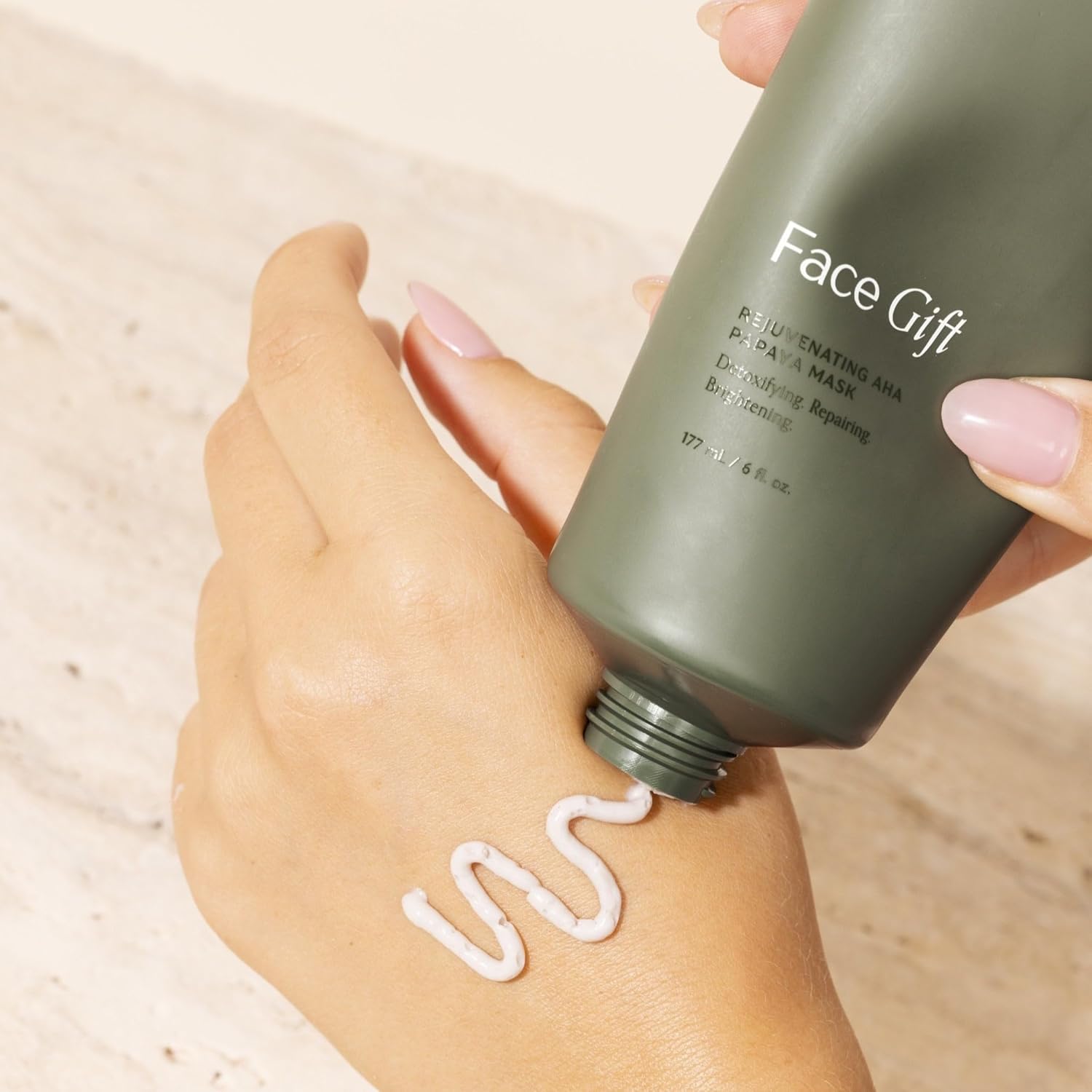- Rejuvenating AHA Papaya Mask: This indulgent creamy mask smooths and softens by gently exfoliating dull surface buildup. Powered by bentonite clay, lactic acid, and papaya enzymes, it leaves skin feeling fresh, hydrated, and radiant—never dry or tight.