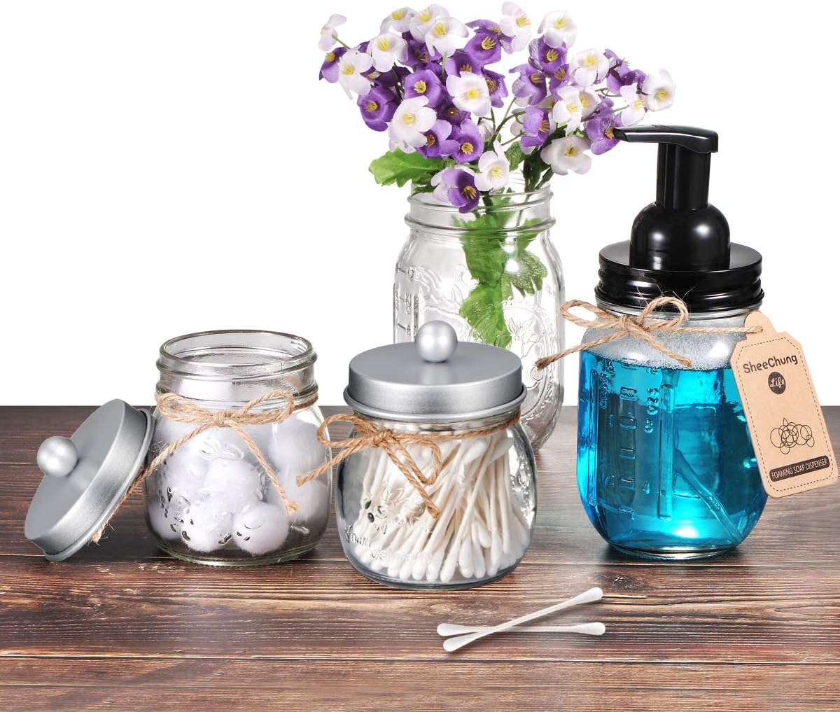 - ✔️Versatile Gift Idea: Ideal for a variety of occasions, this bathroom organizer and storage set is perfect for weddings, housewarming events, birthdays, Mother's Day, Thanksgiving Day, Christmas, New Year, bridal showers, and baby showers. It also makes an excellent gift for mothers, friends, sisters, co-workers, or anyone else, suitable for use throughout the year. The package includes: 2 pack glass mason jars with stainless steal lids. 2 Decorative Twines. 2 Cute Label Stickers.