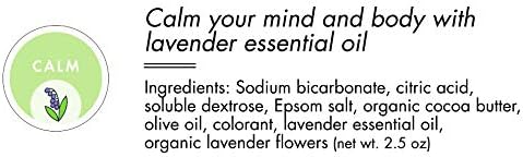 - 2.5 OUNCE BATH BOMBS: This set includes 12 of our CALM bath bombs packaged in pairs. Our CALM bath bombs are made with relaxing Lavender essential oil and lavender flowers