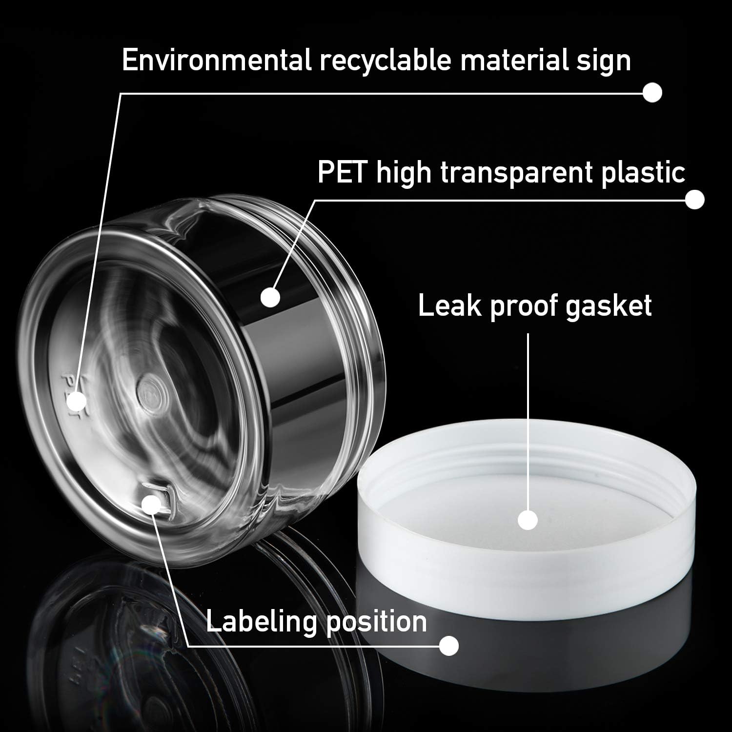 - Product Size: each wide-mouth plastic containers jars measure 7.1 cm/ 2.8 inches in diameter, 4.25 cm/ 1.67 inches in height wide, the volume is 4 oz; Note: due to density issues, the capacity of each product is different, the maximum is no more than 4oz, and the general size is 100ml; These are empty jars, great for meal preparation, condiments, DIY crafts, creams, butters, lotions and others