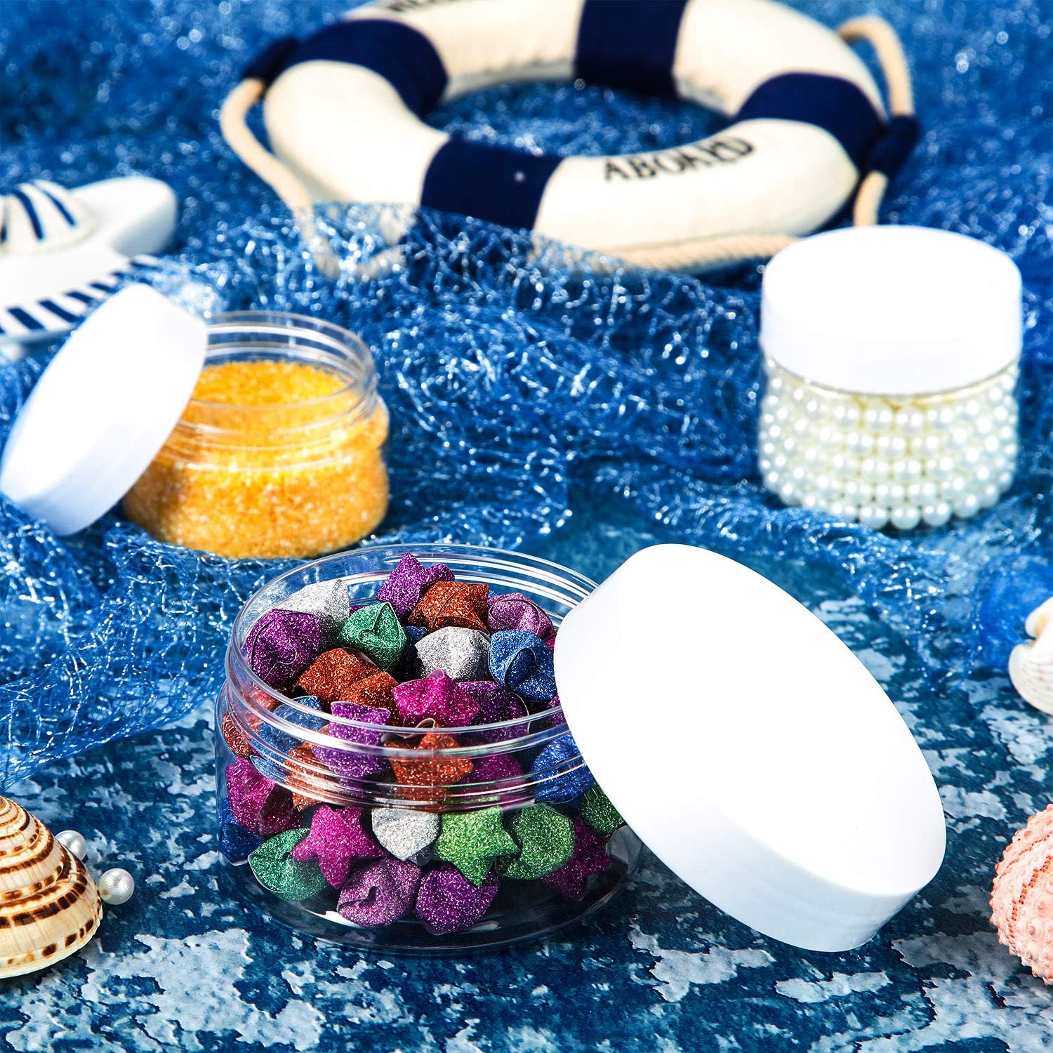 SATINIOR 24 Pieces Empty Clear Plastic Jars with Lids Round Storage Containers Wide-Mouth for Beauty Product Cosmetic Cream Lotion Liquid Butter Craft and Food (White Lid, 4 oz)