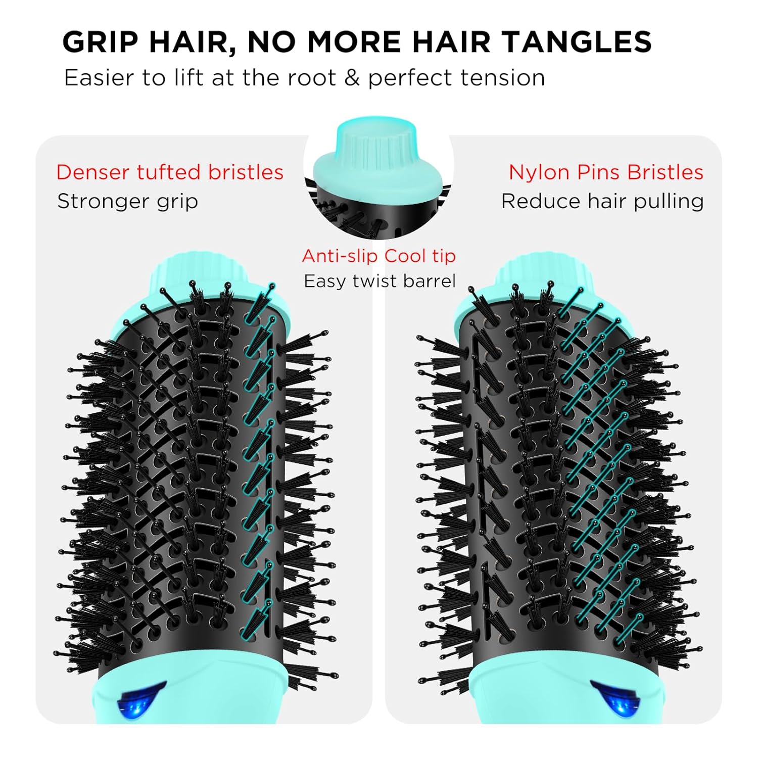 - JUST ONE-STEP: If you are tired of spending hours in the bathroom using a variety of products to dry and style your hair and want to re-create the salon-quality blowout. Why don't you try use this hair dryer brush? The Hair dryer brushes effectively style and dry your hair at once, combining the power of a oval brush and hair dryer in one tool. The result is voluminous, frizz-free shine in a single step.