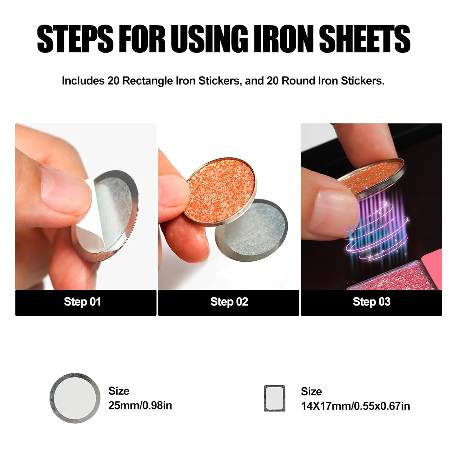 - Package Includes: 43-Piece Magnetic Makeup Depotting Kit Inside one convenient package, you’ll get everything needed to organize your loose makeup pans: 2 empty magnetic palettes (1 holds up to 18 pans, 1 fits 9 pans), 1 stainless steel depotting spatula, 20 self-adhesive round metal stickers, and 20 self-adhesive square metal stickers—43 pieces total to streamline your makeup storage. Empty pans are not included.