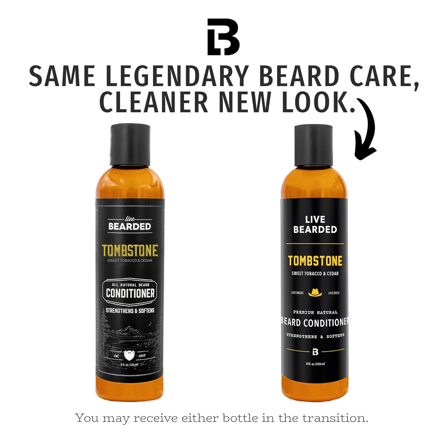 Live Bearded Beard Conditioner, 8 fl oz - Strengthens and Softens Facial Hair - Made in the USA - All-Natural Ingredients with Biotin, Caffeine | Tombstone Scent - Sweet Tobacco, Cedar