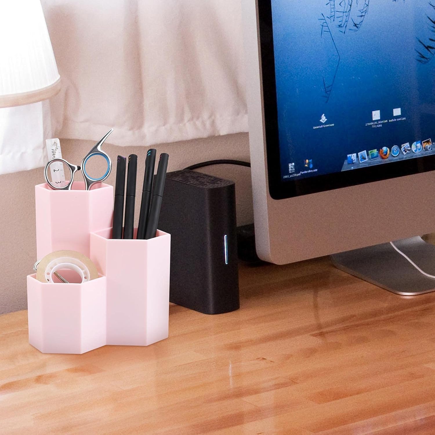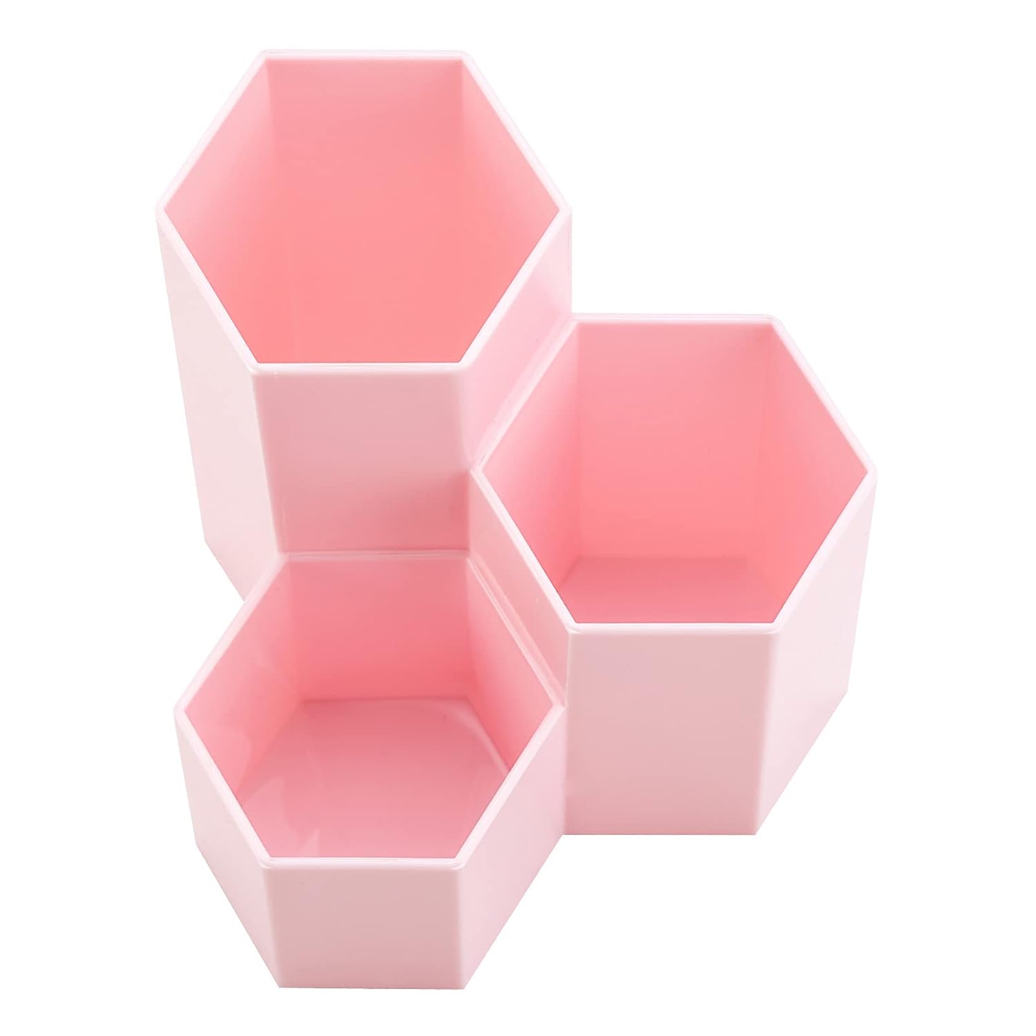 LoveBB Makeup Brush Holder Organizer, 3 Slot Plastic Cosmetics Brushes Pen Storage Solution, Pink