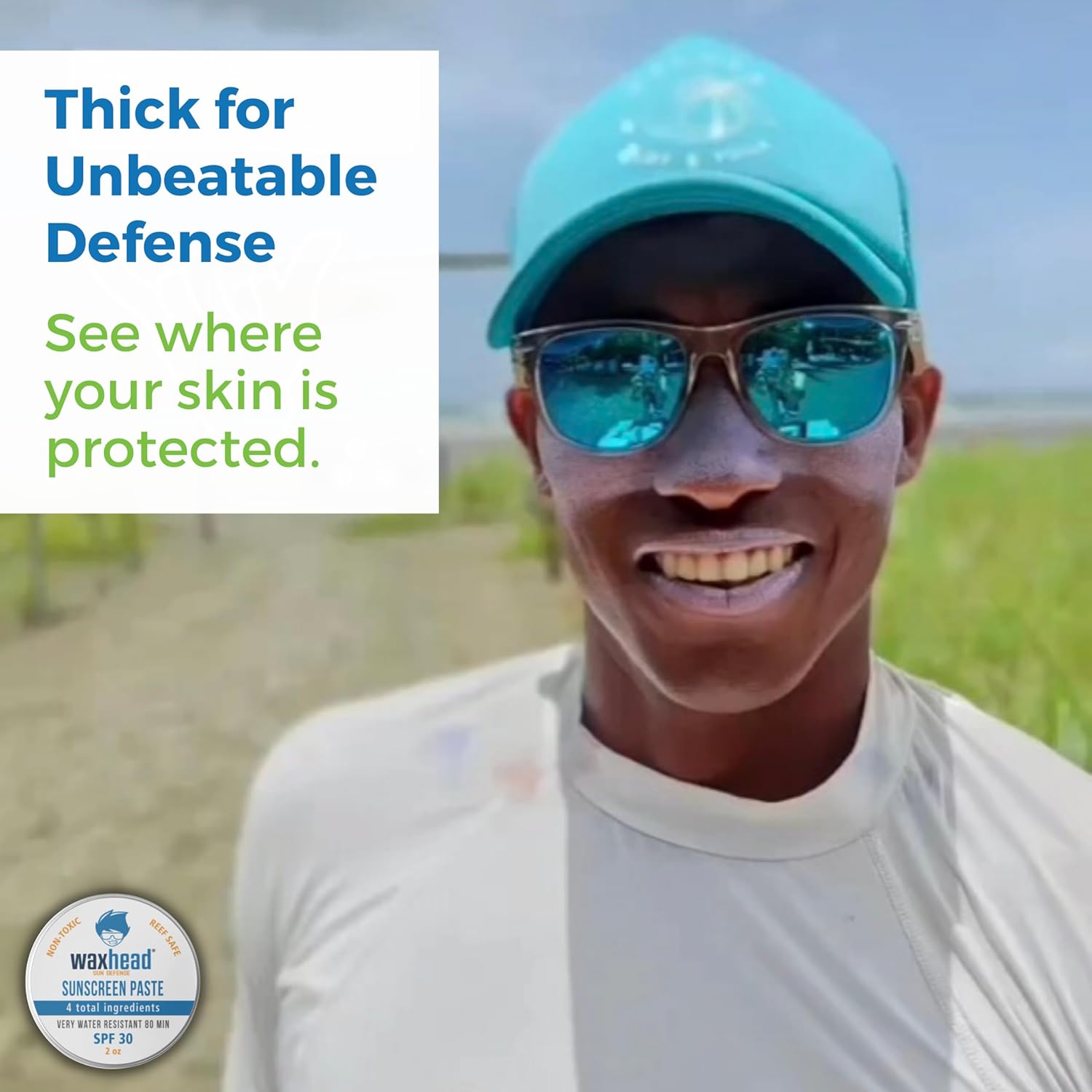 Waxhead Zinc Oxide Sunscreen Face & Nose - Sensitive Skin Safe SPF 30, Reef Safe Physical Visible Protection for Acne Prone Skin, Waterproof Natural Mineral Sunscreen for Kids & Adults (White 2oz)