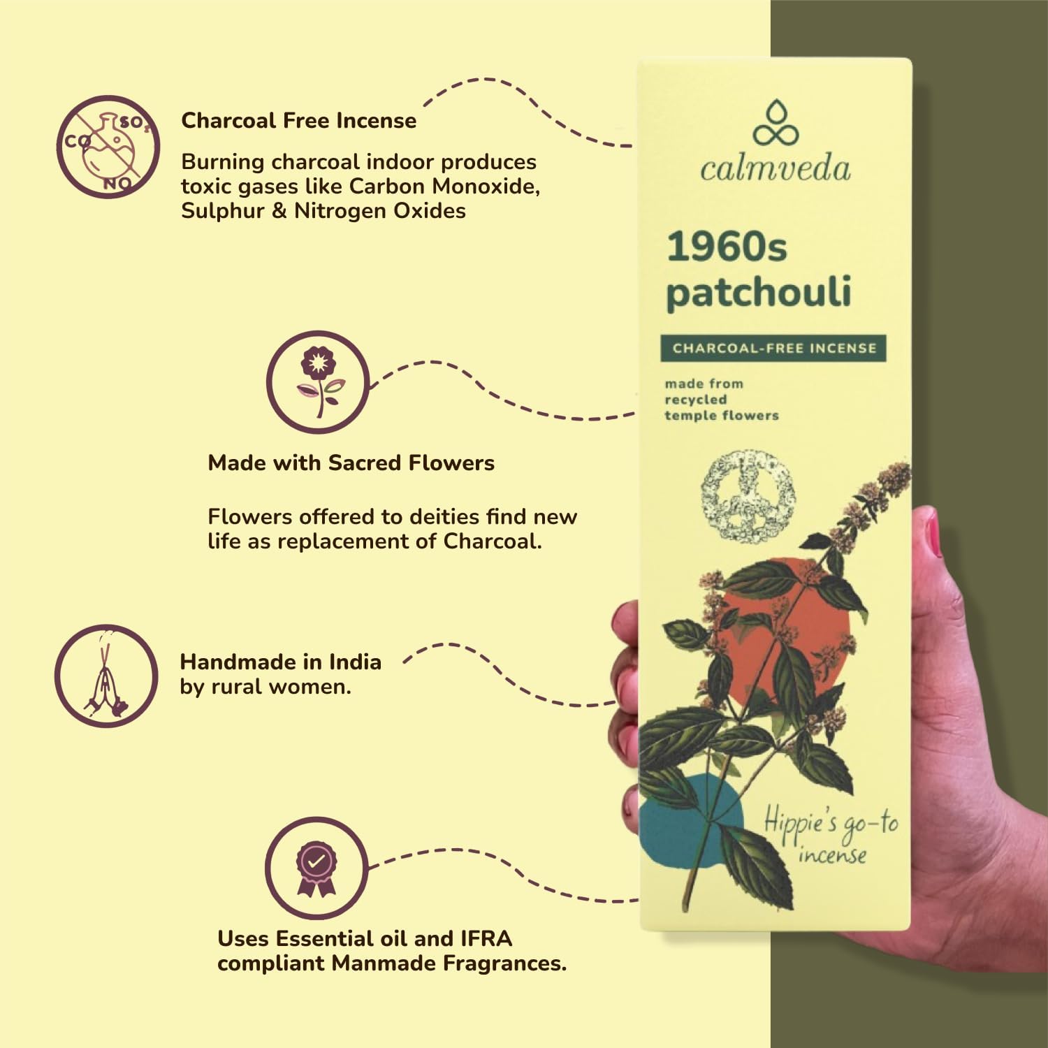 - MADE FROM SACRED FLOWERS : Over 800 mil tonne of flower is offered to Gods in India every year, which is then directly disposed in rivers. We UPCYCLE these holy flowers to use in our incense sticks.