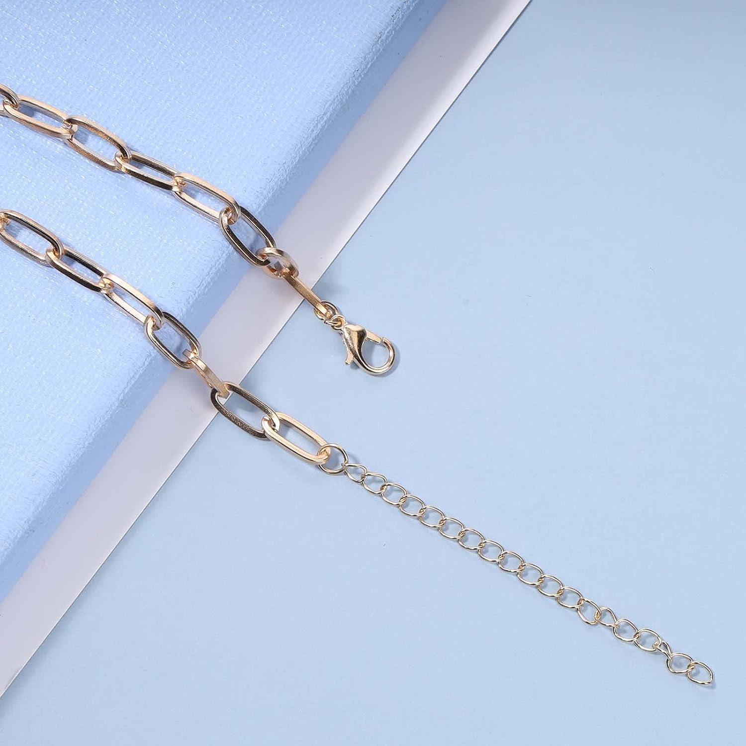 Punk Paper Link Choker Necklace Gold Paperclip Chain Necklace Choker Open Link Chain Necklace Trendy Chain Necklace Jewelry for Women and Girls