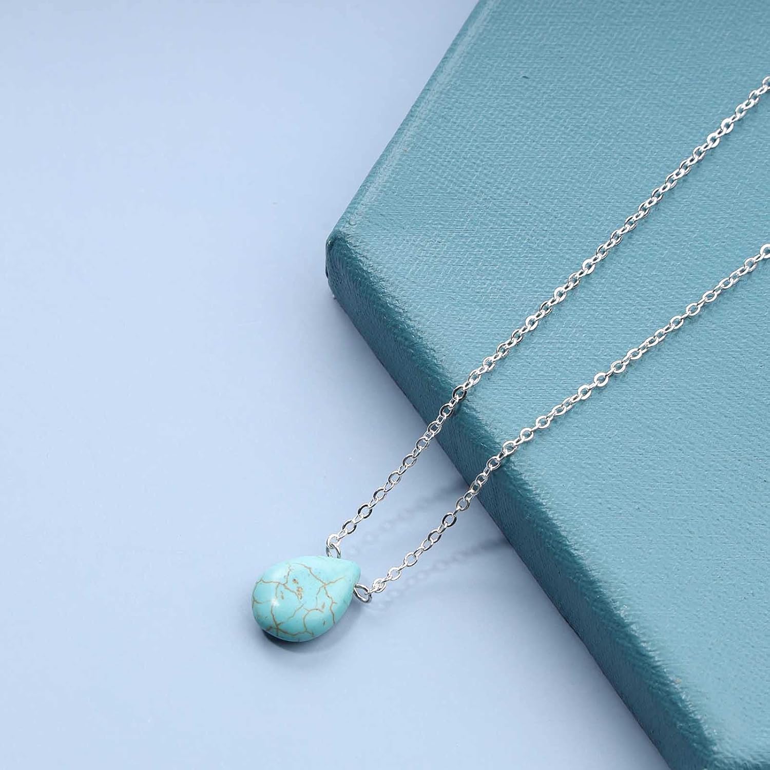 Boho Long Turquoise Necklace Silver Teardrop Turquoise Necklace Blue Turquoise Pendant Necklace Vintage Long Pendant Chain Necklaces Jewelry for Women and Girls