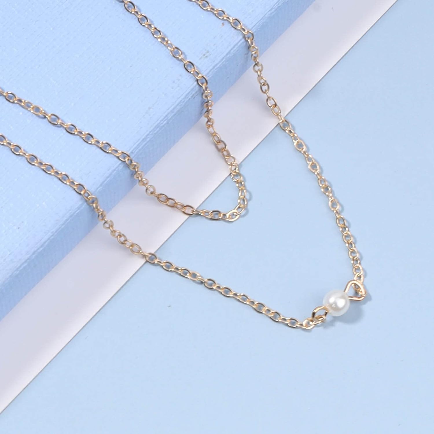 Boho Layered Pearl Choker Necklace Gold Pearl Pendant Necklace Tiny Dot Layering Necklace Vintage Necklace Chain Jewelry for Women and Girls Gifts