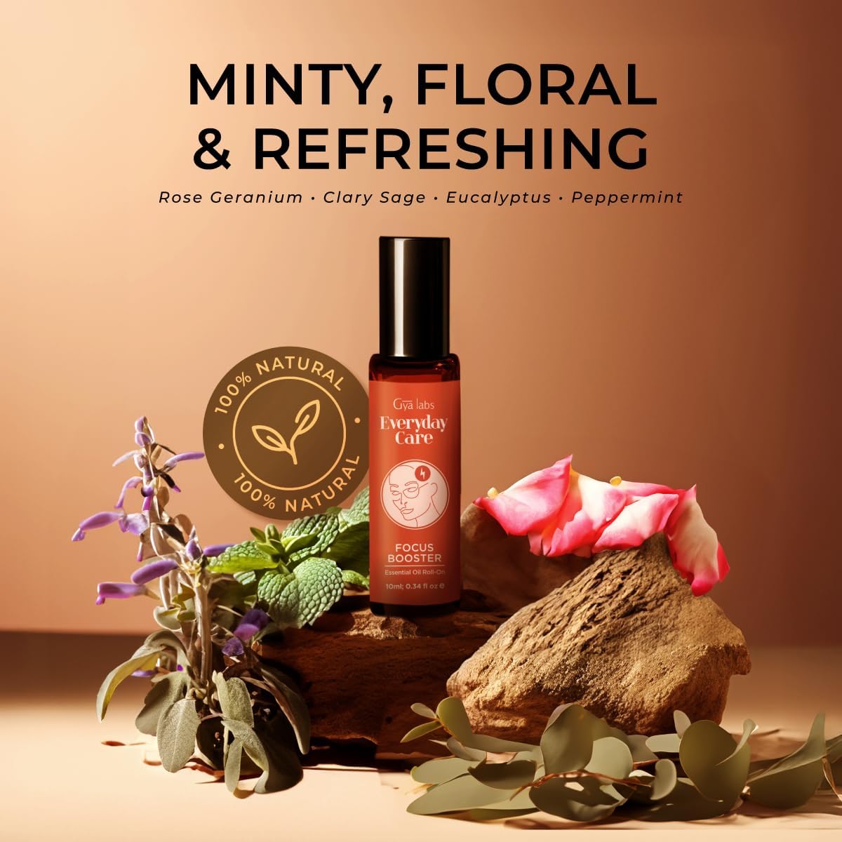 Gya Labs Focus Booster Essential Oil Roll on - Supports Sustained Sense of Focus for Studies & Tasks - 100% Pure Natural Aromatherapy Oil Roller, Geranium & Eucalyptus Blend, Travel Size (0.34 Fl Oz)