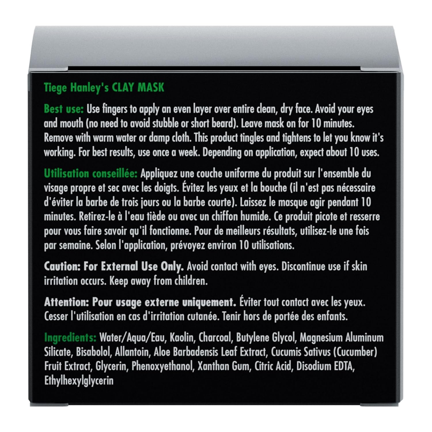 - Detox Your Face: The Tiege Hanley CLAY MASK brings balance to oily, combination and blemish-prone skin. The deep-cleansing formula purifies the skin and leaves it clear and refreshed. By removing what your skin doesn’t need, this powerful mask improves the appearance of skin while keeping its natural moisture intact. 2oz.