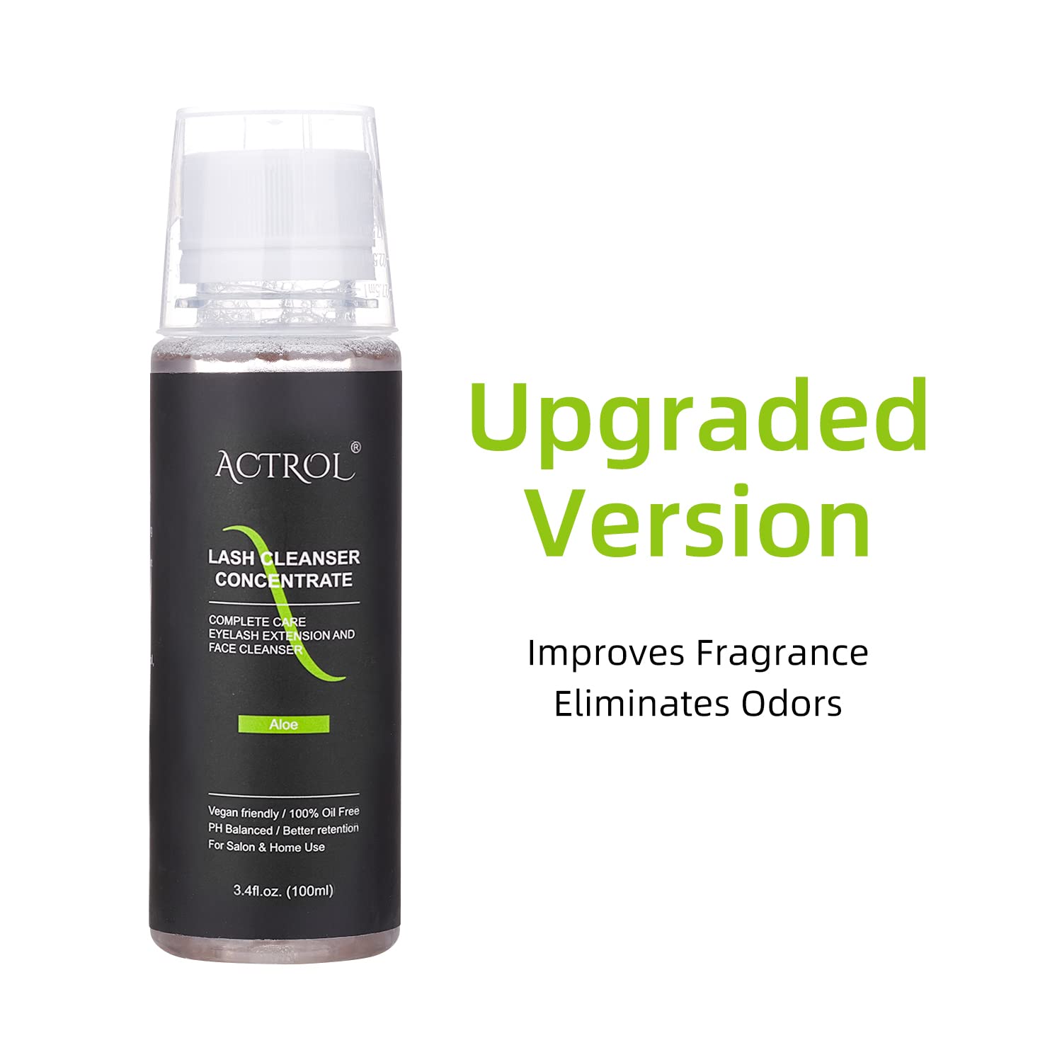 Eyelash Cleanser Concentrate 100ml Aloe Professional Lash Shampoo Foaming Cleanser Paraben & Sulfate Free Non-lrritating Wash for Extensions Lashes with Salon Home Care-Makes 20 Bottles