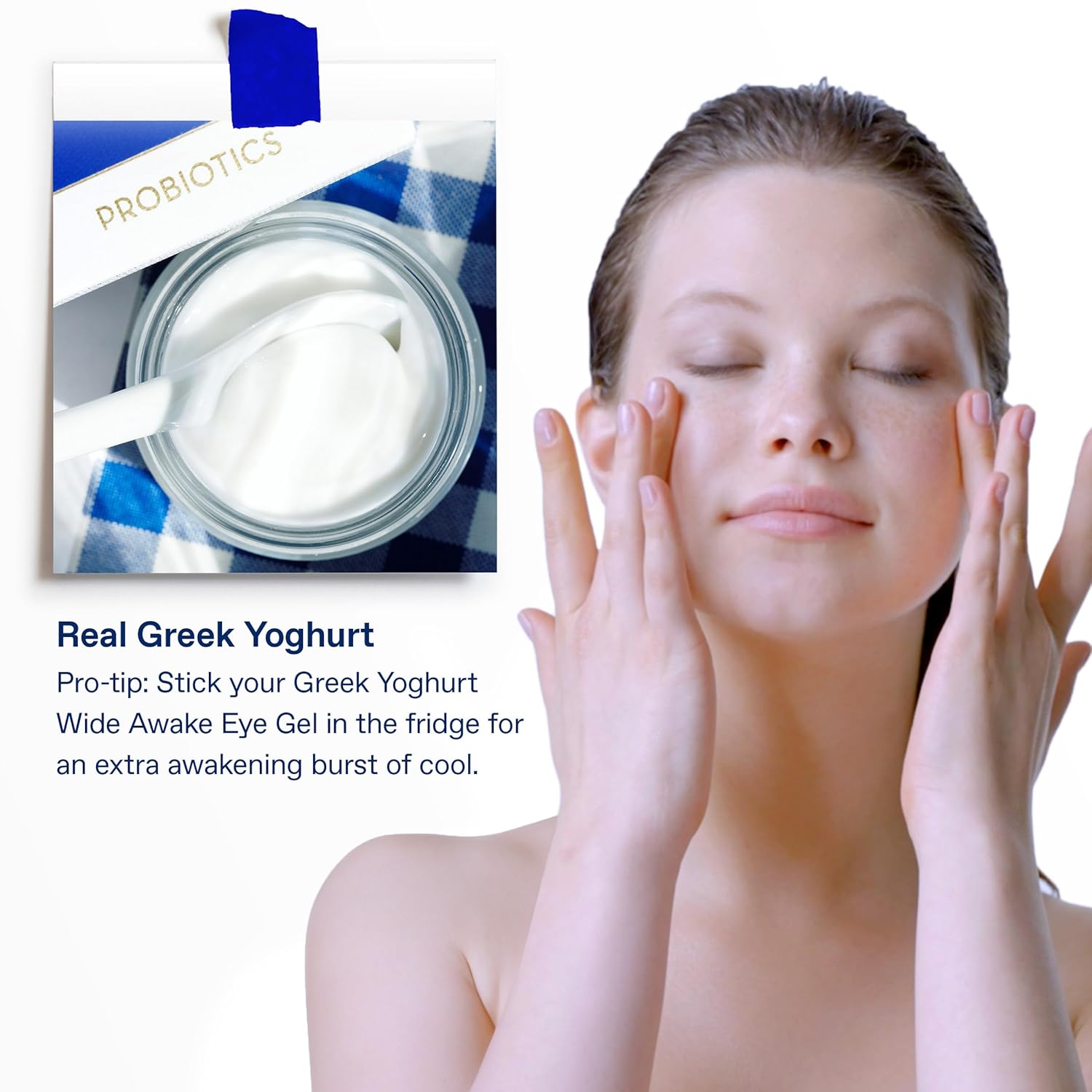 - HOW TO USE: Apply each morning and evening, gently rolling under each eye, from inner corner to outer corner. Pro-tip: Stick your Greek Yoghurt Wide Awake Eye Gel in the fridge for an extra awakening burst of cool.