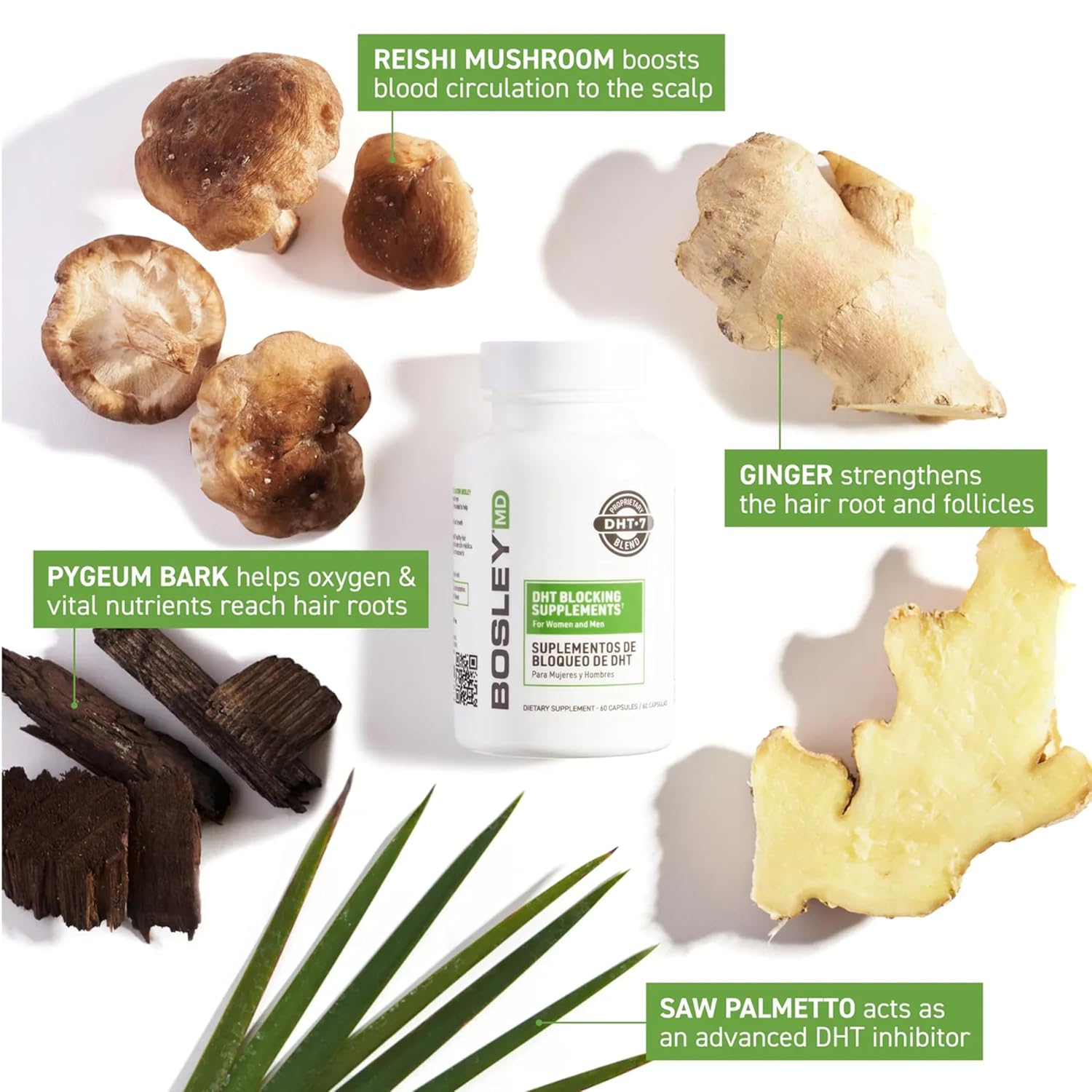 DHT Blocking Supplements – DHT·7 Blend with Saw Palmetto, Kelp, Reishi Mushroom, Green Tea, Nettle Leaf, Dandelion Root & Pygeum Bark – Promotes Thicker, Fuller Hair for Men & Women – 60 Capsules