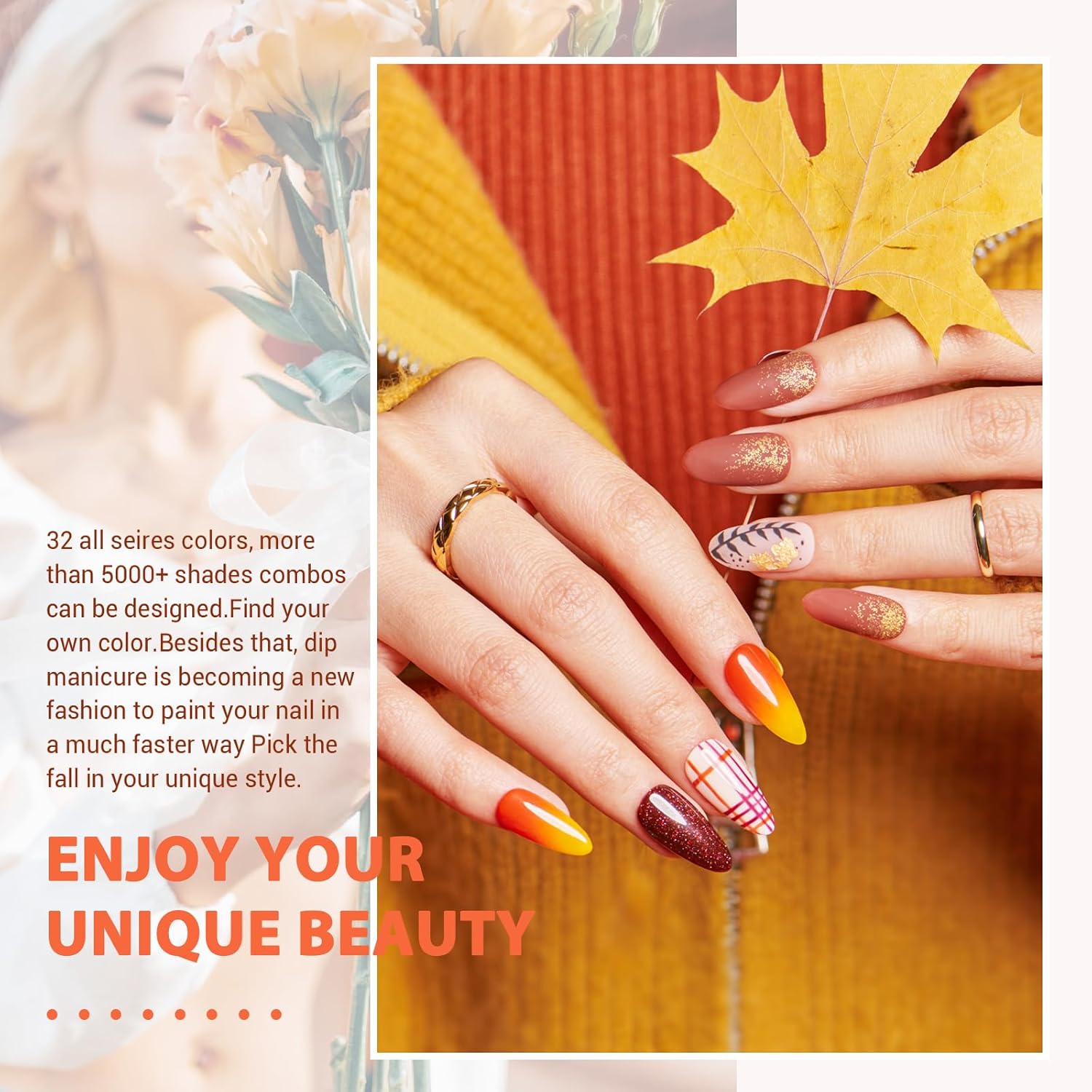 - ⏱【Long Lasting Bright Color】This shatter-resistant, crack-resistant dip powder spreads easily and lasts over 21+ days with daily use! Unparalleled gloss and vividness, no yellowing, and superb adhesion. 32 most fashionable style colors, full but natural, light, breathable, waterproof, and more than 25,000+ shade combinations can be designed. With premium dip powder from AZUREBEAUTY, your nail would look brilliant shine finish