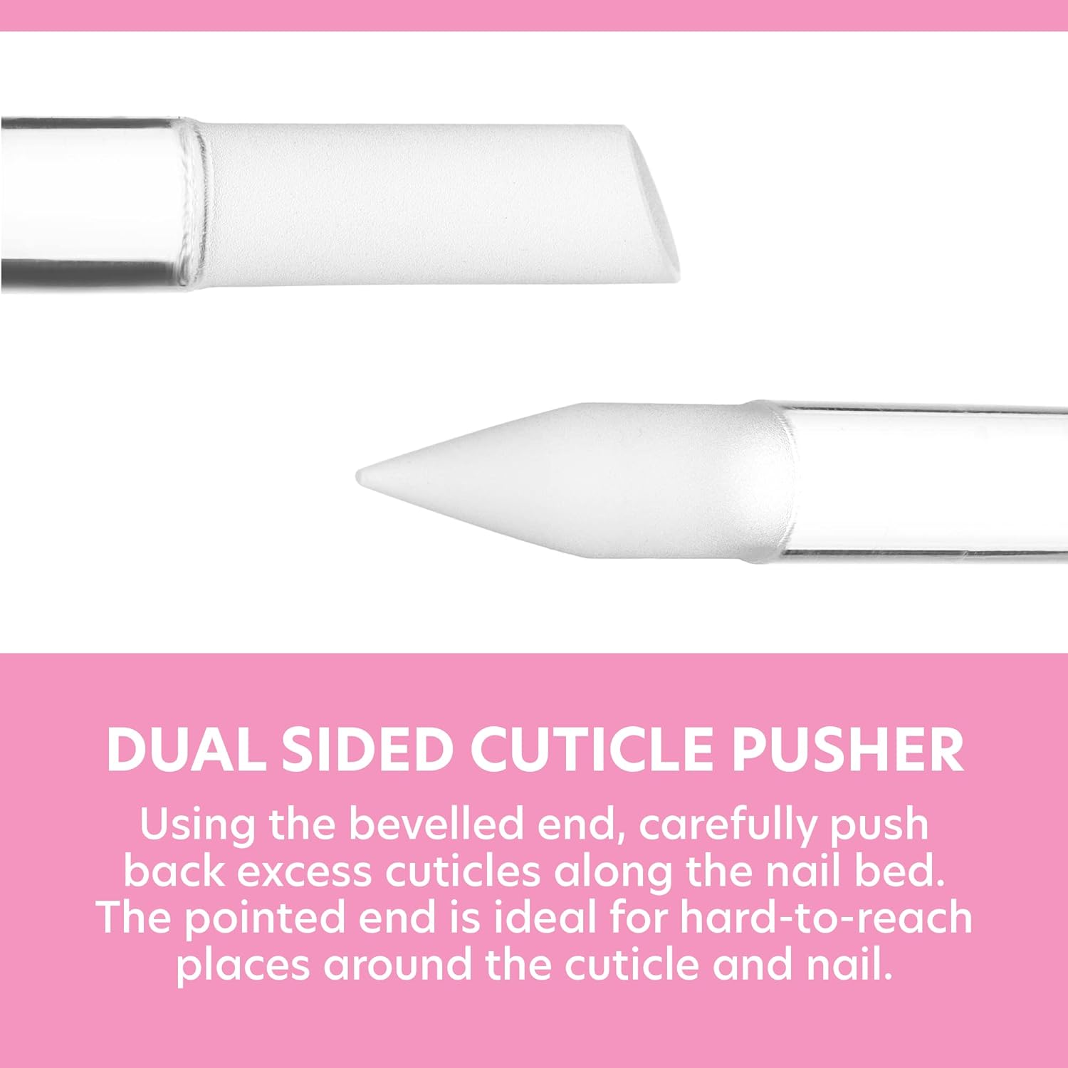 - Expertly Etched Grit for Precision: Both the pointed and slanted ends feature grit etched directly out of the glass body, providing precise and effective cuticle care without damaging your nails. The pointed end is ideal for cleaning around the nail beds, while the slanted edge can be used to carefully push back the skin to reveal more nail.