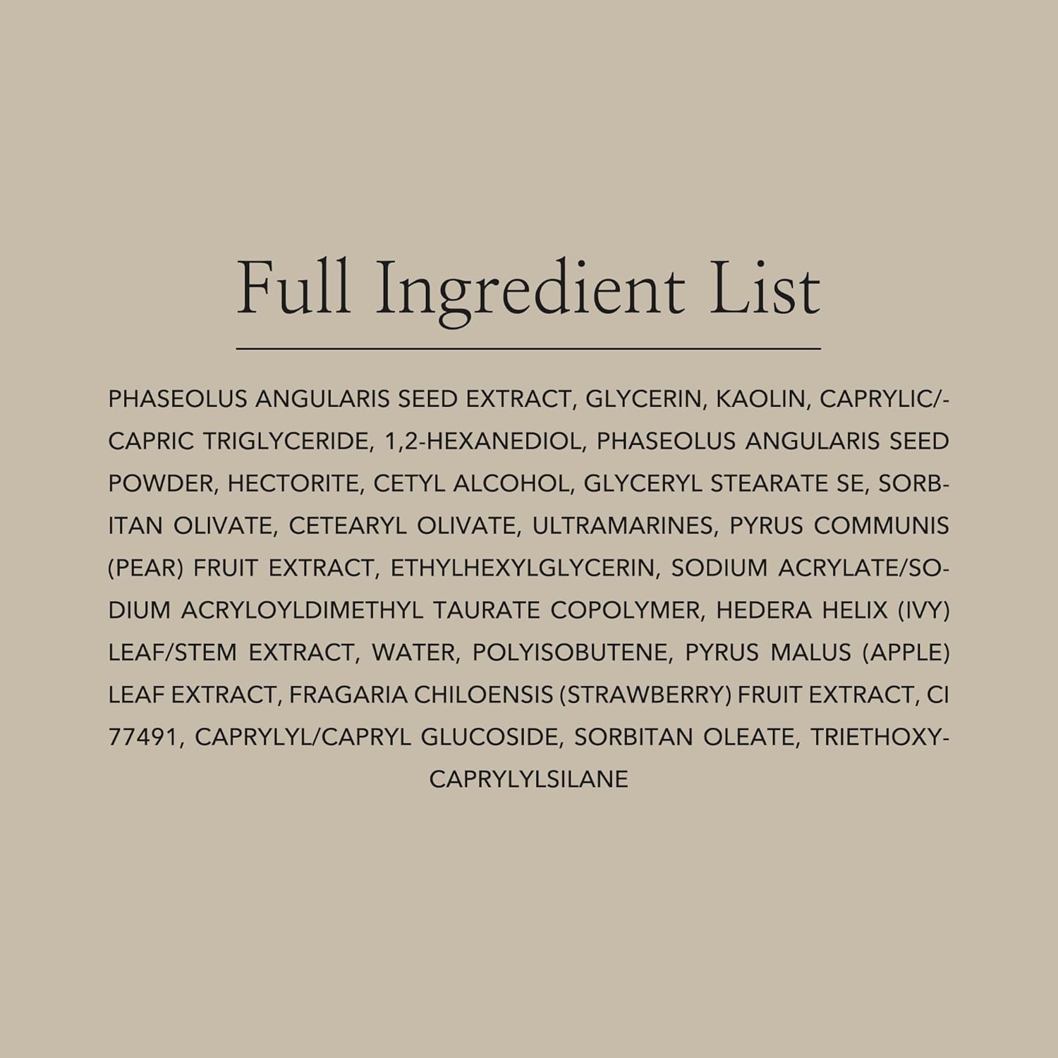 - [Kaolin] Kaolin absorbs sebum, and red bean extract and red bean powder help with exfoliating and clear skin texture.