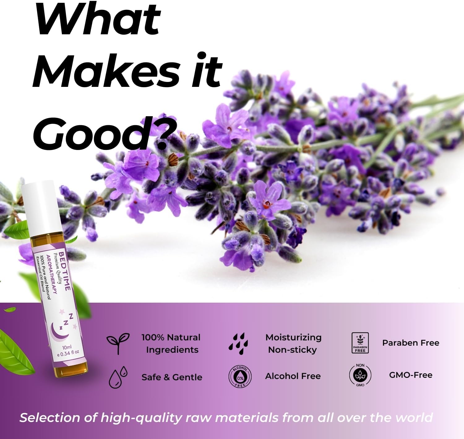 Benatu Bedtime Essential Oil Roll On Blend (with Tangerine, Lavender, Marjoram Oil)- Travel Size Relaxing Roller for Body Topical Massage, Natural Scent Aromatherapy Gift for Women & Men 10ml