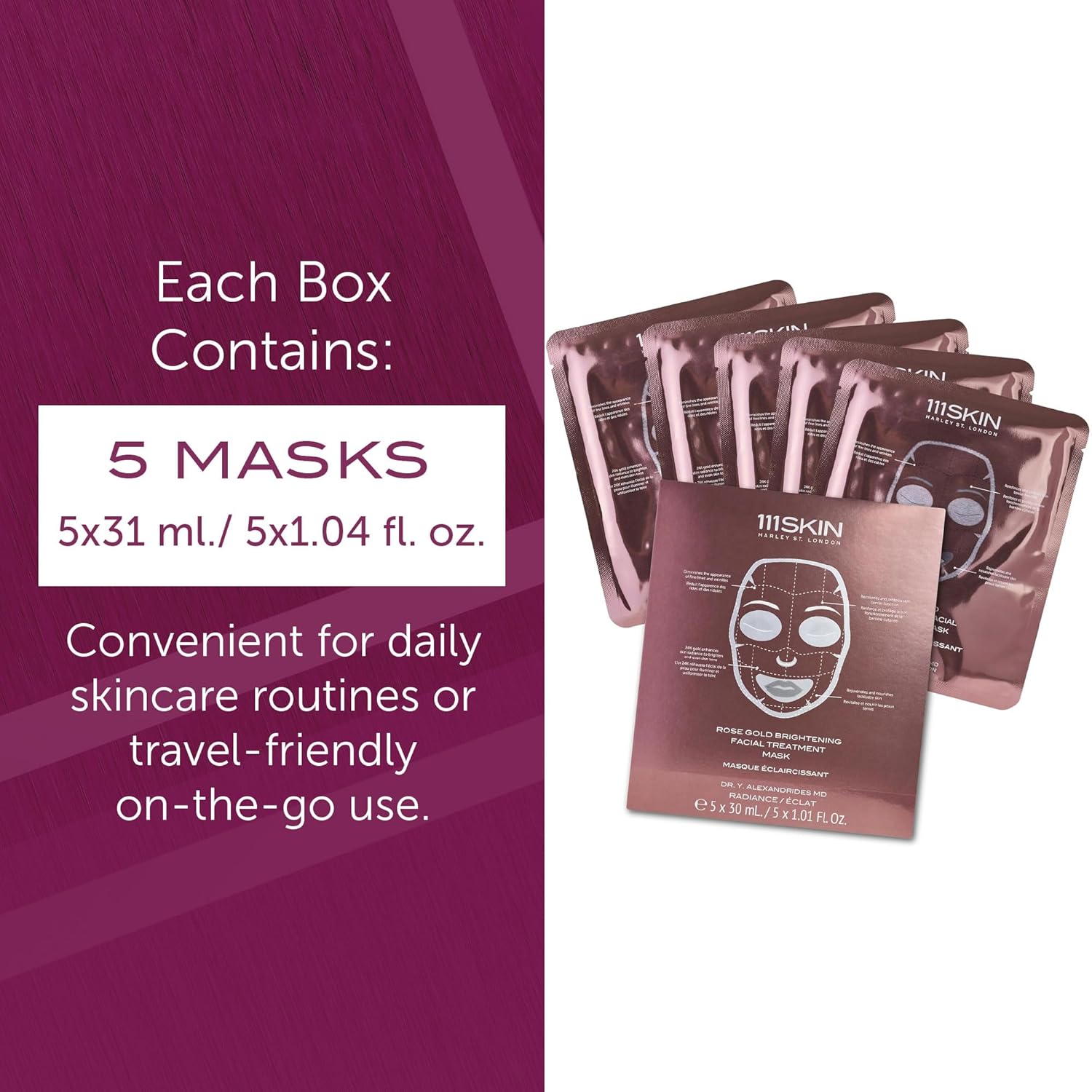 111SKIN Rose Gold Brightening Facial Treatment Mask | Fragrance Free | The Ultimate Pre-Event Mask | For Hydration & Radiance | Set of 5 (1.01 oz each)