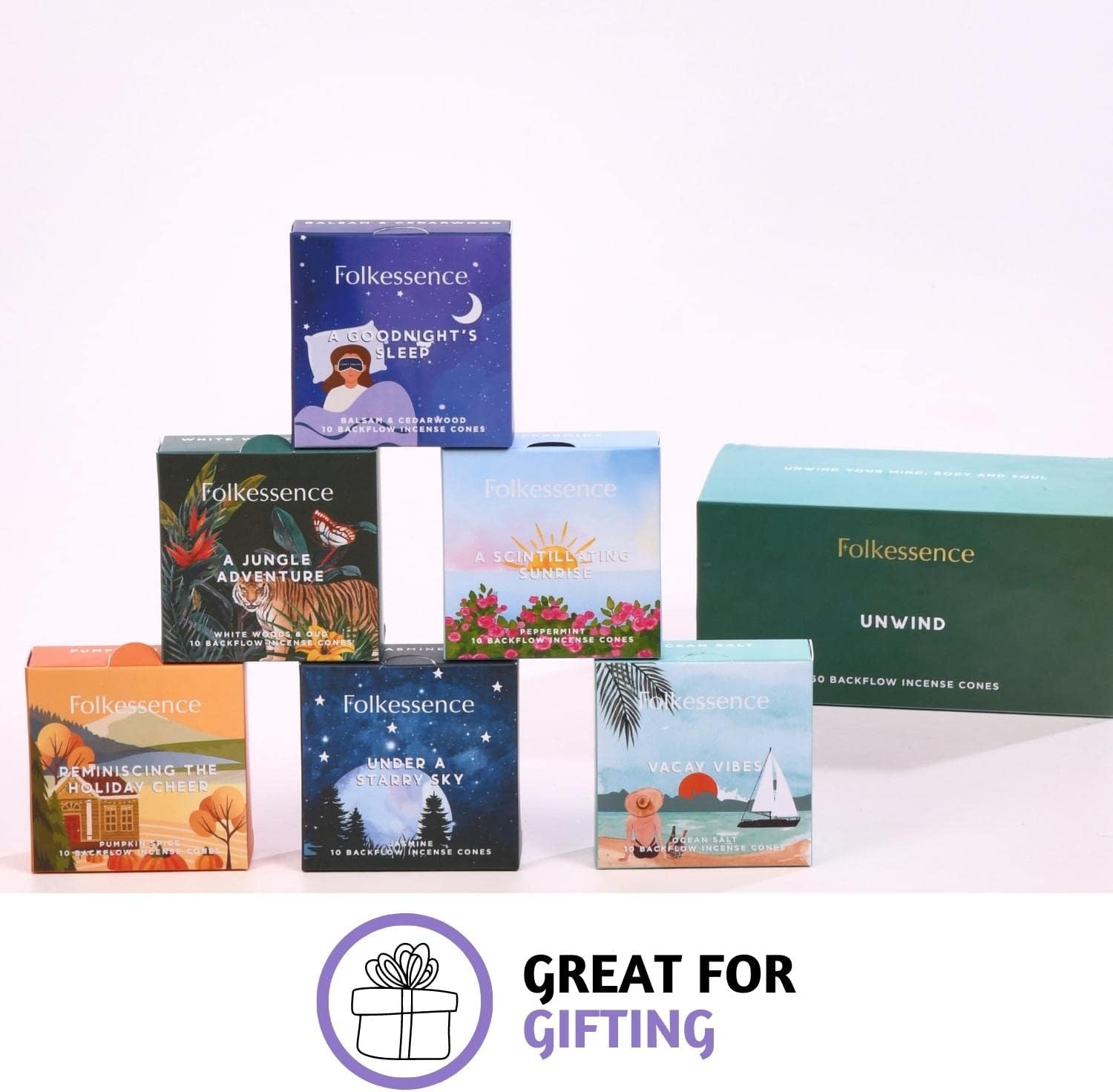 Folkulture Backflow Incense Cones for Waterfall | Set of 6 Waterfall Incense Cones Scented for Gifts | Balsam Cedarwood, Jasmine, Oud, Pumpkin Spice | Peppermint Inscents-Cones for Home