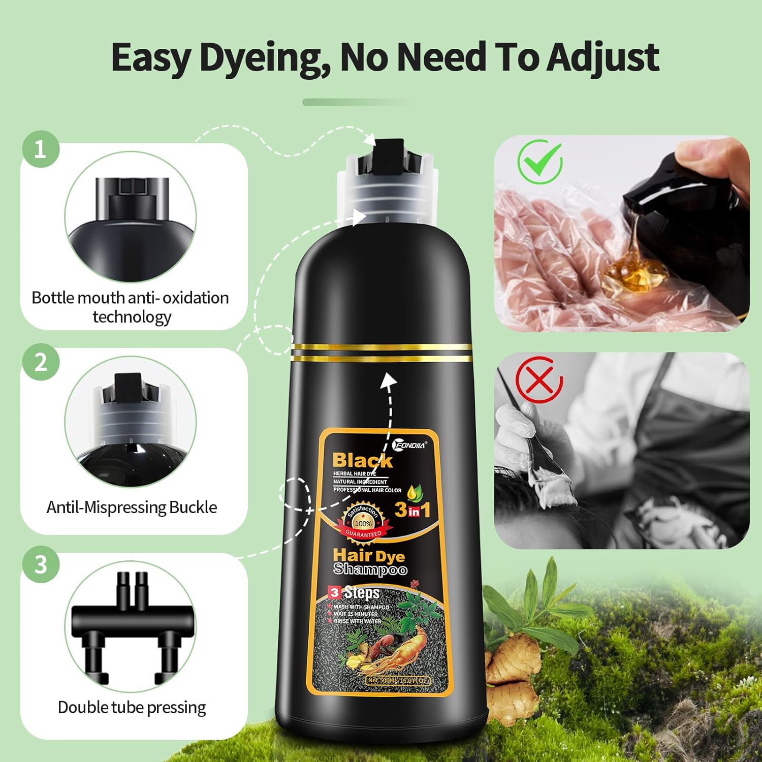 - Revolutionary Hair Dye Shampoo 3 In 1 - Our hair coloring shampoo is a combining shampoo, conditioner, and hair dye all in one easy-to-use product. Helps you cover 100% of your gray hair, say goodbye to the hassle of traditional hair dye and hello to a revolutionary new way to color your hair at home.