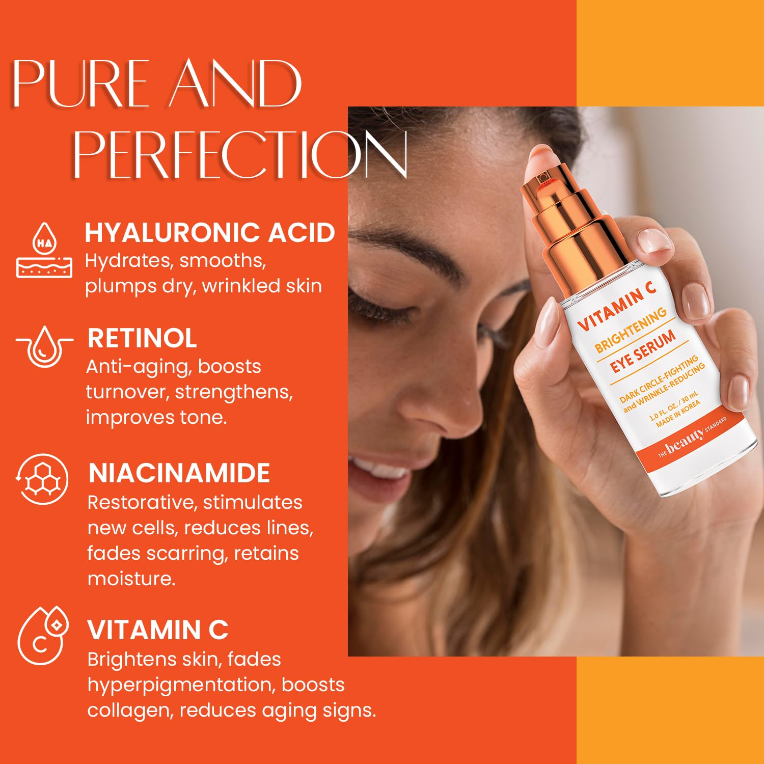 - KOREAN SKIN CARE EXCELLENCE: Discover the luxury of Korean skincare with our Vitamin C Under Eye Serum, meticulously crafted to brighten, hydrate, and rejuvenate. Infused with natural clean ingredients, this serum is designed to diminish dark circles, puffiness, and fine lines, leaving your eyes refreshed and youthful.