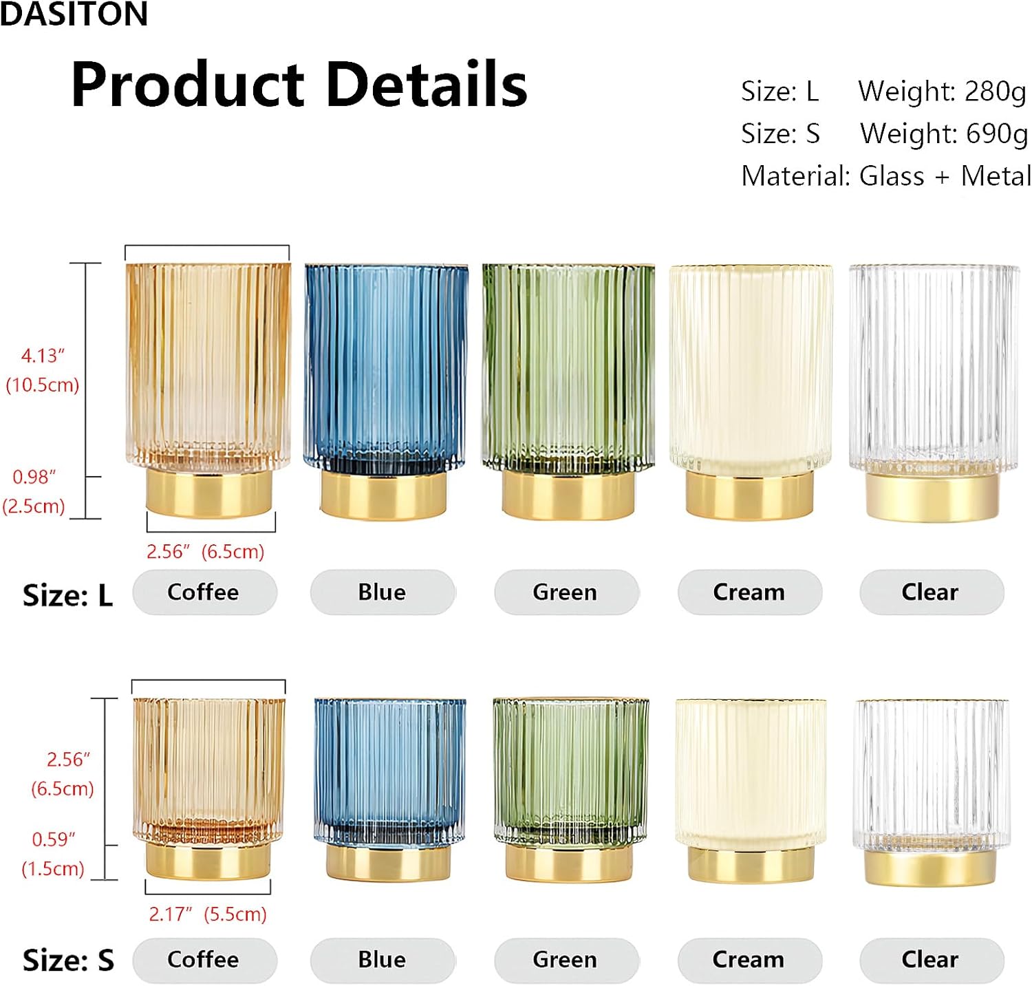 DASITON Makeup Brush holder Organizer,Crystal Cosmetic Makeup Brush Glass Brushes Storage Holder, Vintage Make Up Brush Cup Pen Pencil Holder striped vase(Clear S+L)