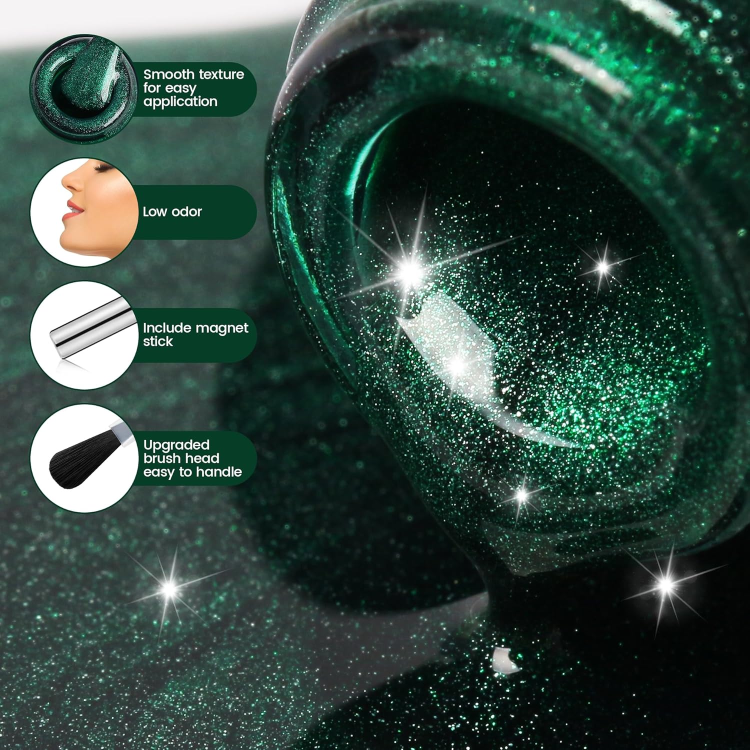 YTD Likomey Cat Eye Gel Nail Polish,15ml Green Holographic Translucent Neutral Jelly Sheer Shiny Magnetic Glitter Fall Winter UV Color Varnish with Magnet Stick,MY334