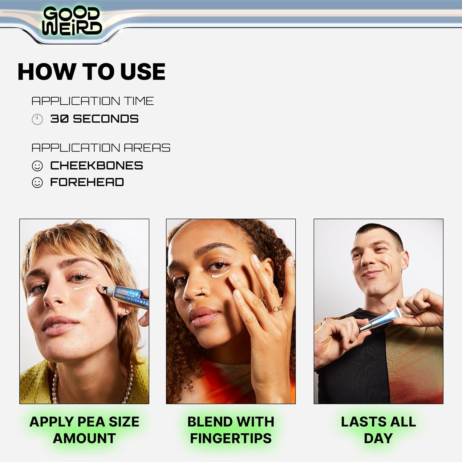 - Wake Up Your Eyes with Uniqueness: Embrace Good Weird's genderless approach to beauty with our Cold Brew Undereye serum. Like an espresso shot for your face, this invigorating treatment smooths, blurs, and diminishes fine lines, brightening your skin and promoting collagen production. Has subtle reflective shimmer to brighten the undereye area. Remember, it's good to be weird!