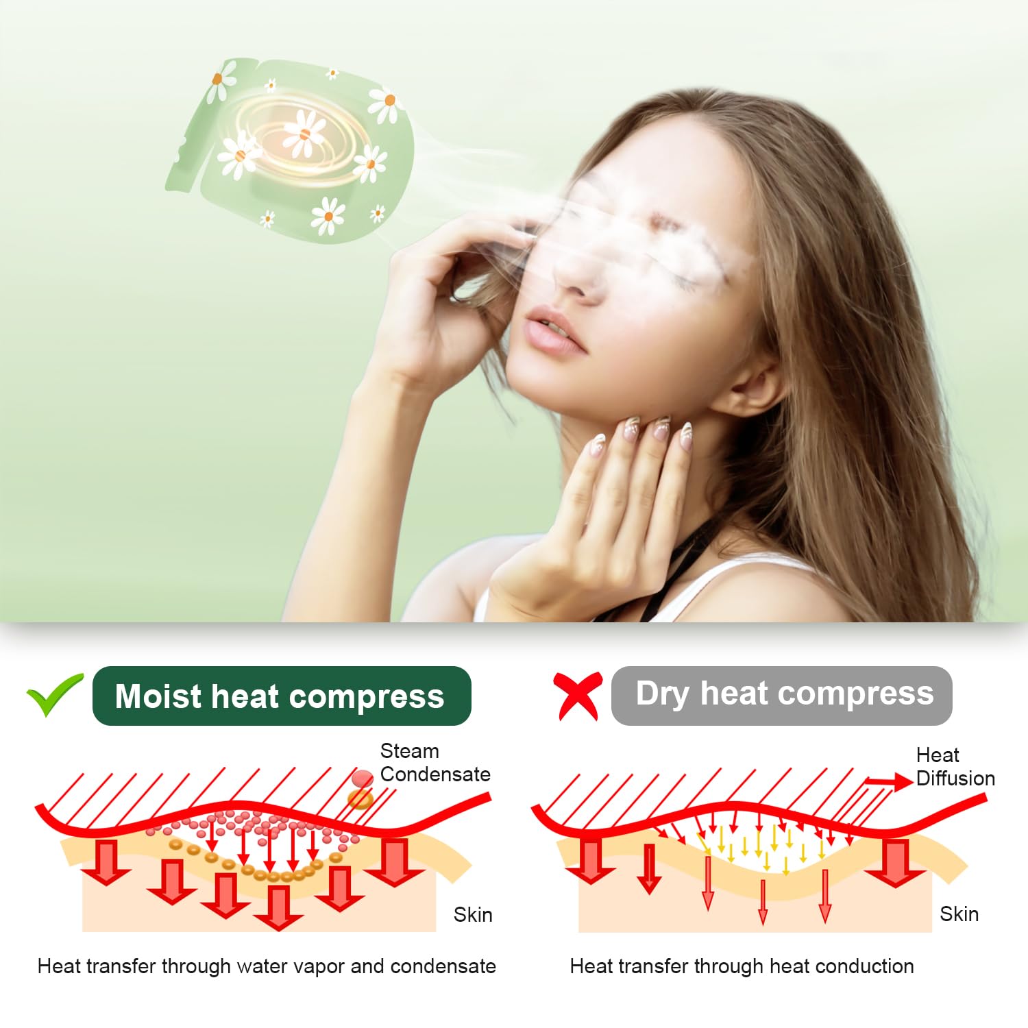 - 【Effectively Relieves Dry Eye Fatigue】: The unique design of our heated eye masks can promote blood circulation, release dense and even steam, provide a mild warming effect, gently soothe the skin around the eyes, effectively moisturise the eyes, improve sleep quality, and help you get rid of dry eyes, eye bags and dark circles, migraines and more. Give your eyes health and vitality and regain bright, clear eyes with our steam eye mask