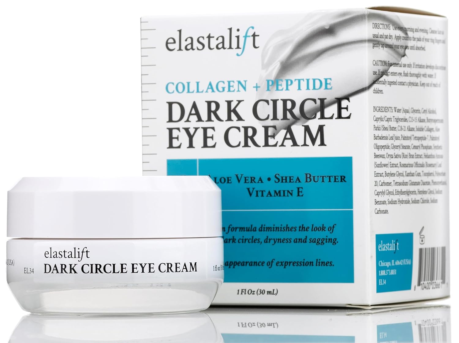 - Our Promise – Trust in Elastalift’s scientific skin care. Your Dark Circle Eye Cream is made with quality ingredients to ensure the formula exceeds our standards and yours. Nourish, soothe, & protect your skin while reducing the pesky appearance of dark circles, puffiness, sagging skin, & wrinkles with this Elastalift Collagen + Peptide Corrector Eye Cream.