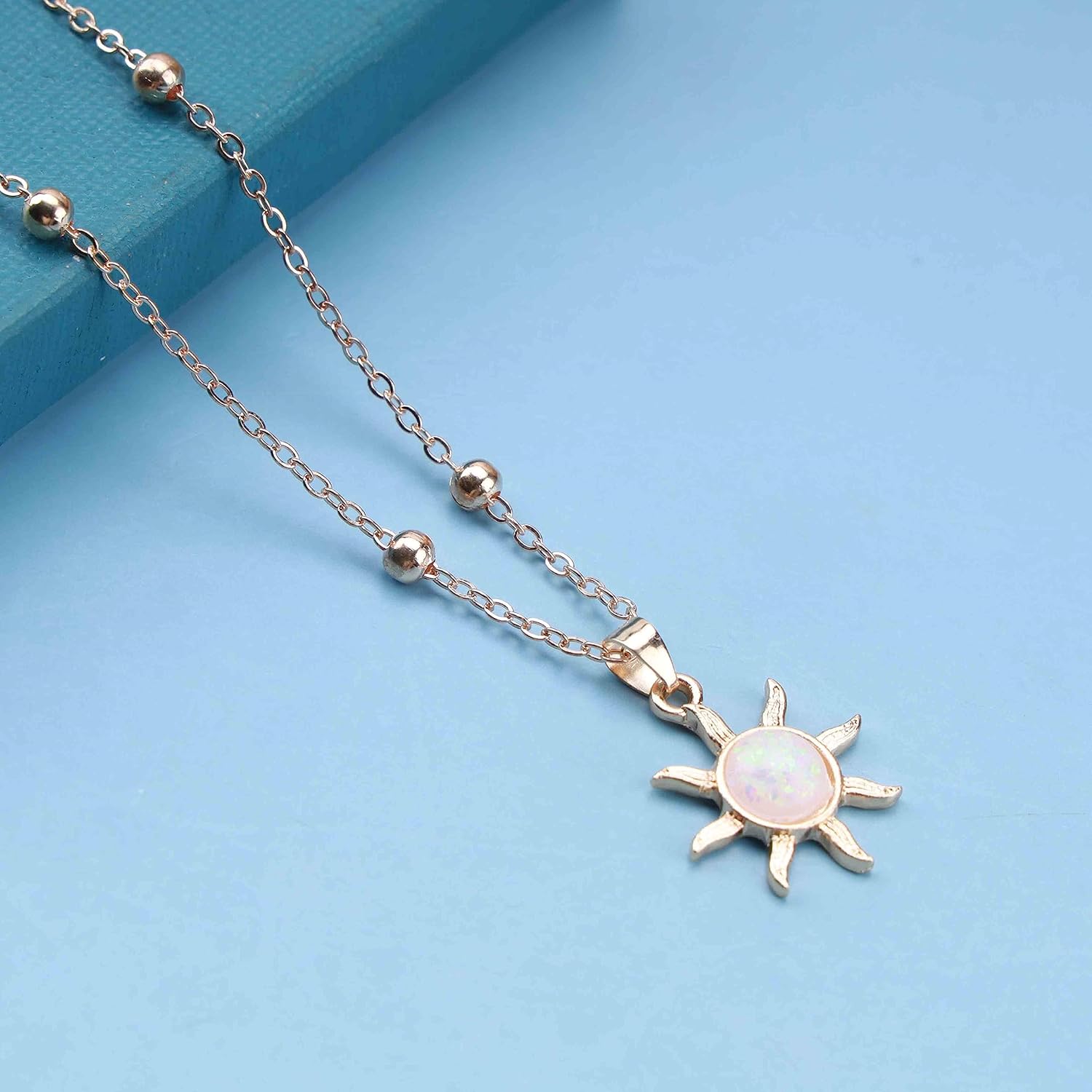 Vintage Opal Crystal Sun Pendent Necklace Opal Sunburst Necklace Moonstone Sun Choker Necklace Gold Ball Chain Necklace Jewelry for Women (Gold)