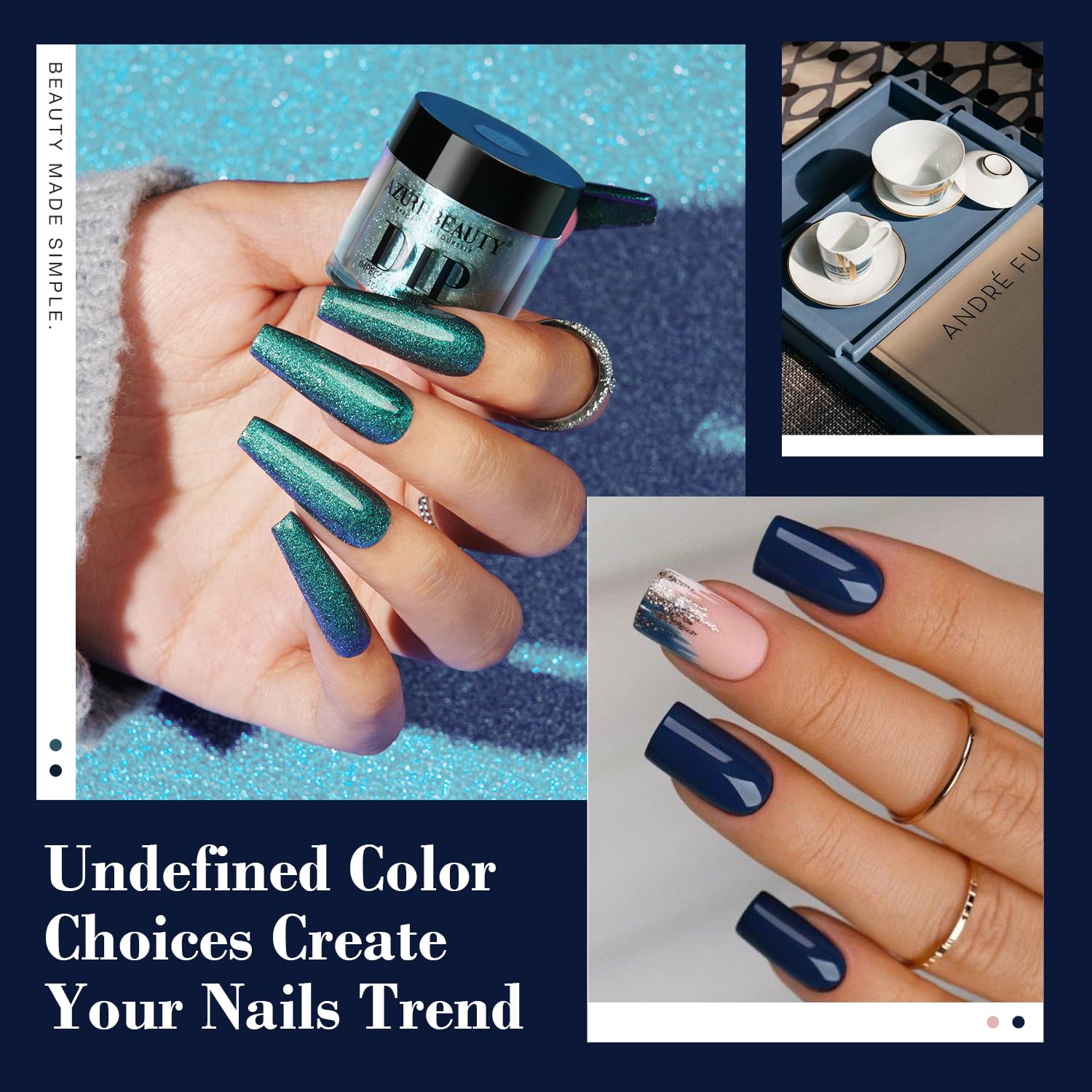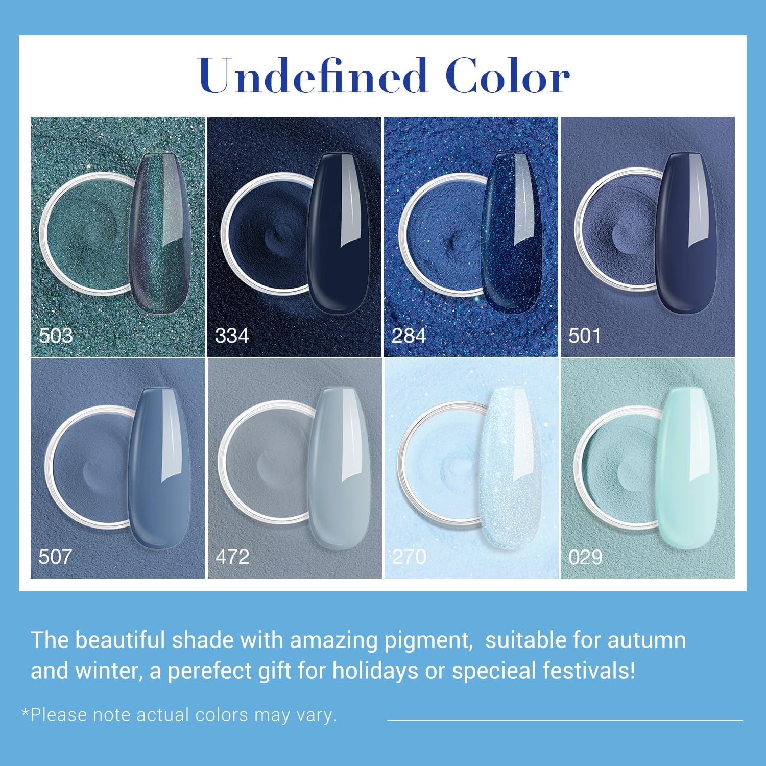 AZUREBEAUTY 30Pcs Dip Powder Nail Kit Starter with Nail Sticks, Glitter Baby Dark Blue 8 Colors Dipping Powder Liquid Set Added Matte Top Coat for Fall Winter Nail Art Manicure Salon DIY Home Gift