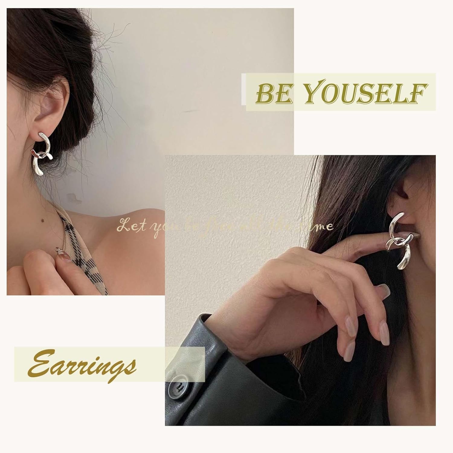 - 【Exquisite and Simple】Statement geometric cross earrings perfectly highlight the beauty of this earring jewelry with 2 crossed C-shaped curved bar drop earrings.