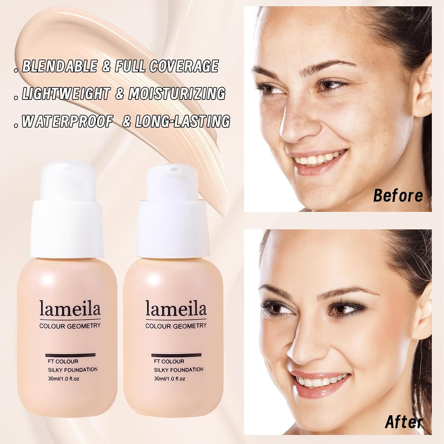 - [Makeup Set] The perfect starter makeup kit includes 16 colors eyeshadow palette, dual-ended counter and highlighter stick, full coverage liquid foundation, face powder, dual-ended Eyebrow Pencil, Eyeliner, lip gloss, 7 PCs makeup brushes set, makeup sponge, high-quality material cosmetic bag. All women’s makeup essentials are put in one gorgeous cosmetic bag.