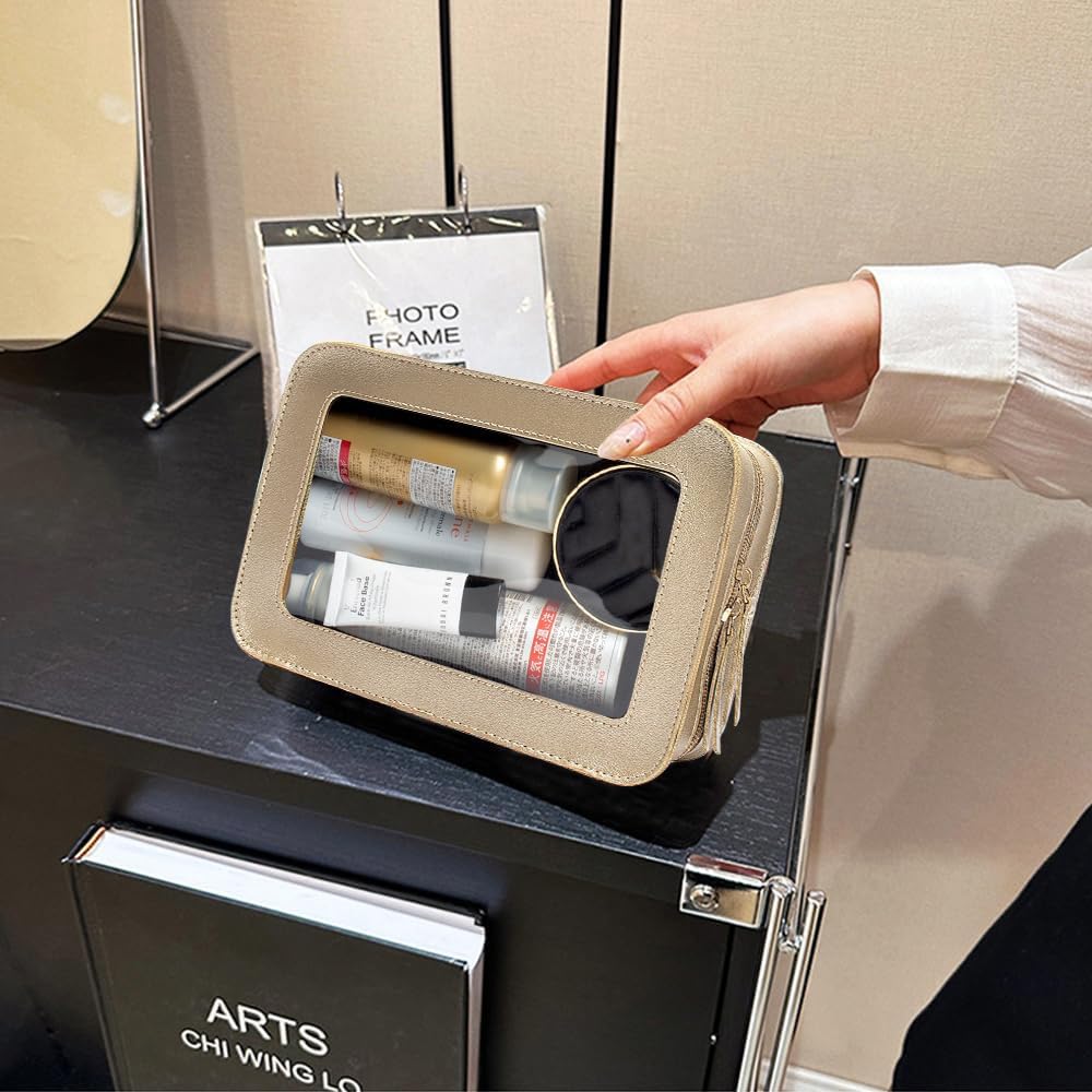 • Clear Design: Our clear toiletry bag is sleek and minimalistic look for your makeup accessories collection. And is designed with a clear PVC window,all items are clear at a glance, and you can quickly choose the cosmetics you need. Size:9.44“*6.1”*2.75“