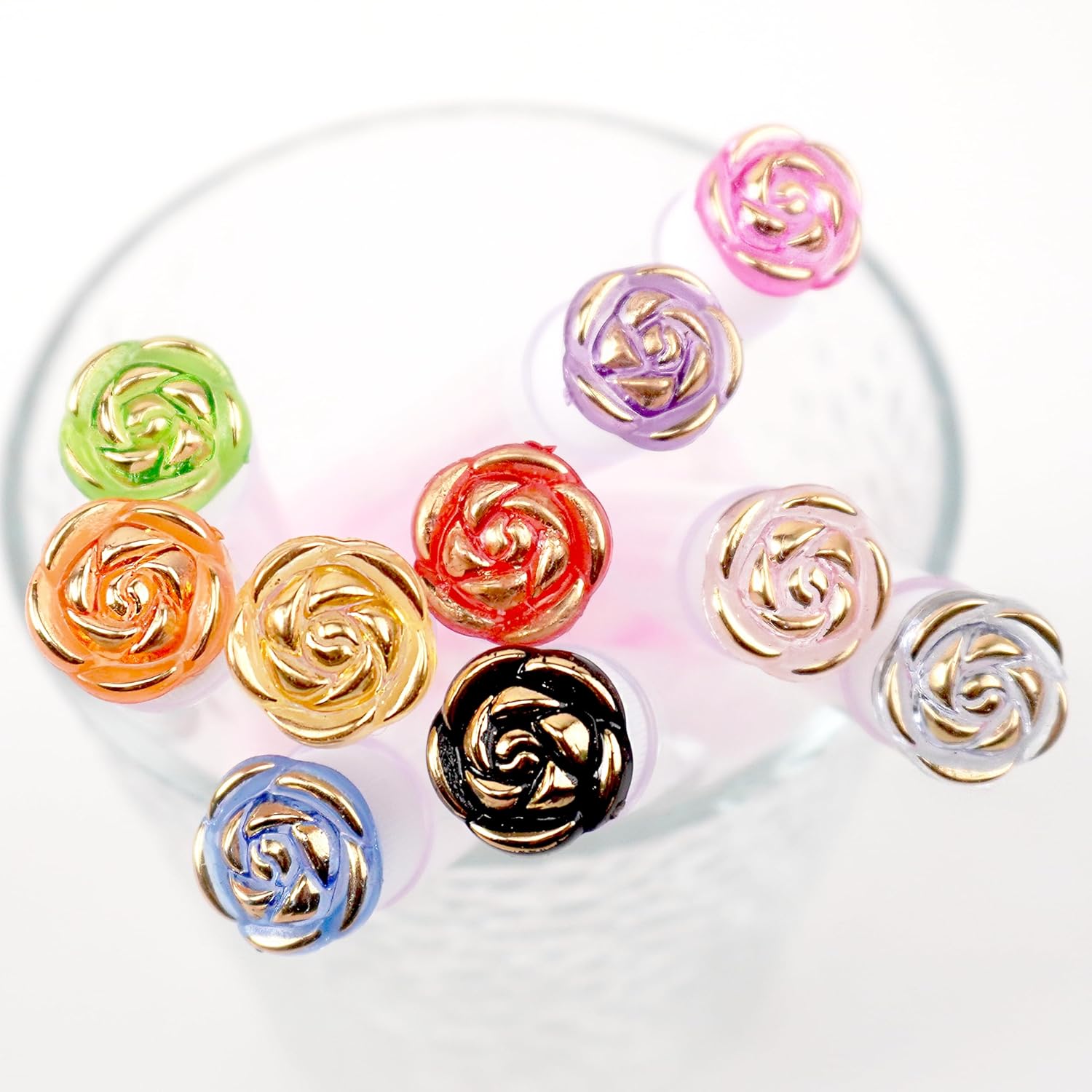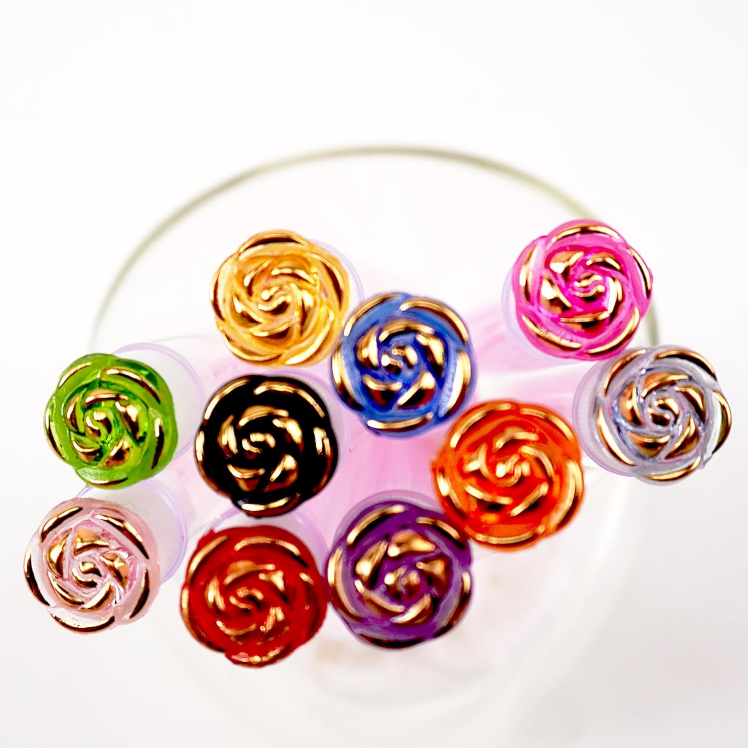 i-Laesh 10-Piece Disposable Mascara Wands with Tube - Diamond Spoolies for Eyelash & Eyebrow Makeup - Multi-Color Lash Applicator Set - Gold Rose