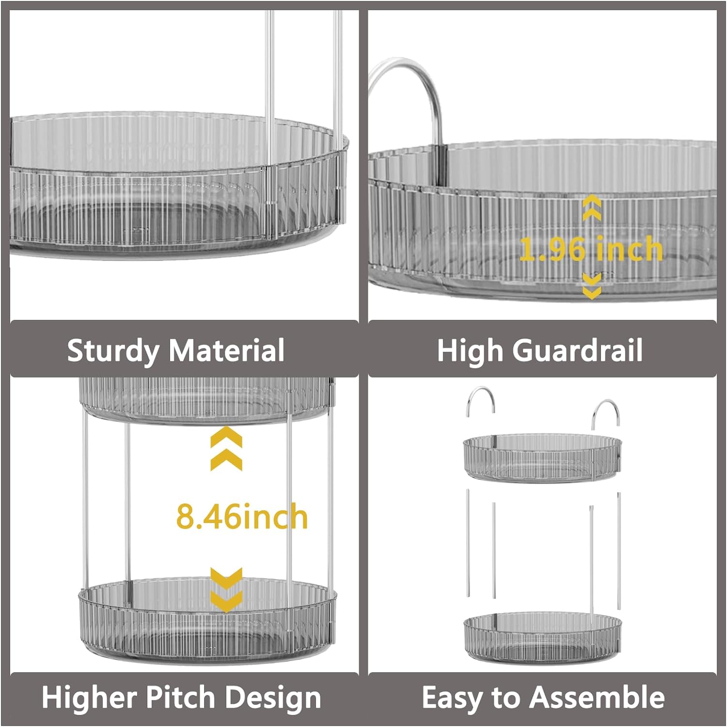 360 Rotating Makeup Organizer for Vanity,Bathroom Countertop Organizer,Spinning Perfume Organizer&Vanity Organizer(Grey-2 Tier)
