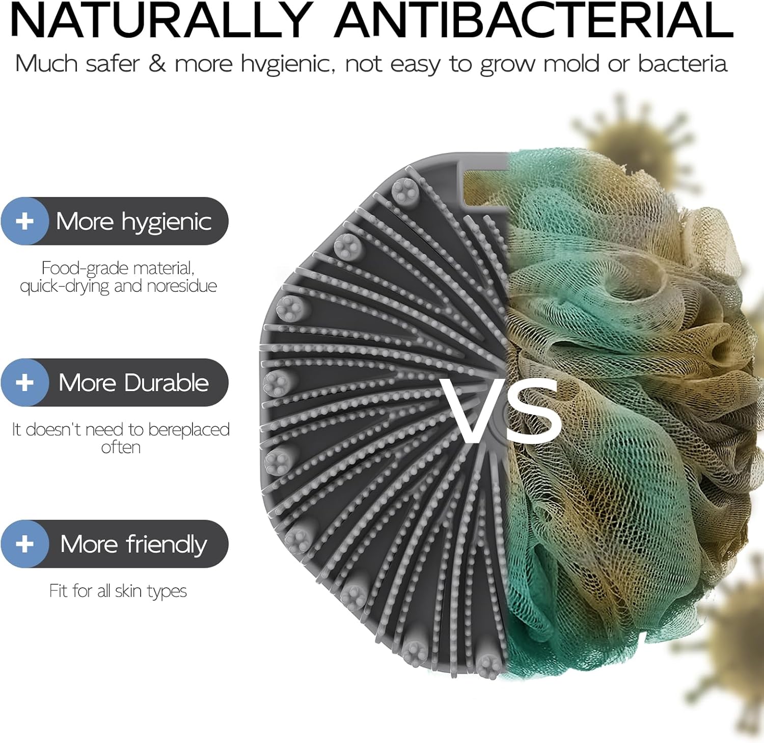 - ECO-FRIENDLY SILICONE: Crafted from safe and durable food-grade silicone, our body bath scrubber is gentle on your skin while still offering effective exfoliation and cleansing.