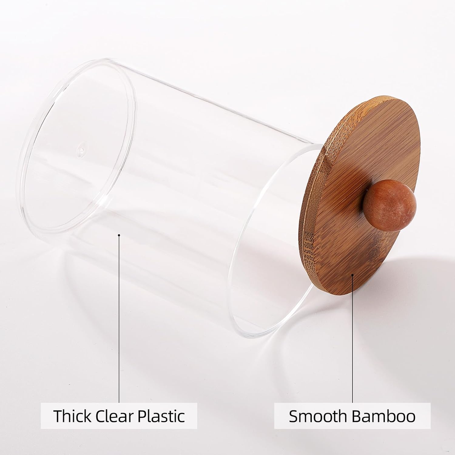 - Each cotton ball dispenser has a natural bamboo lid which is healthy, environmentally friendly and keeps from dust