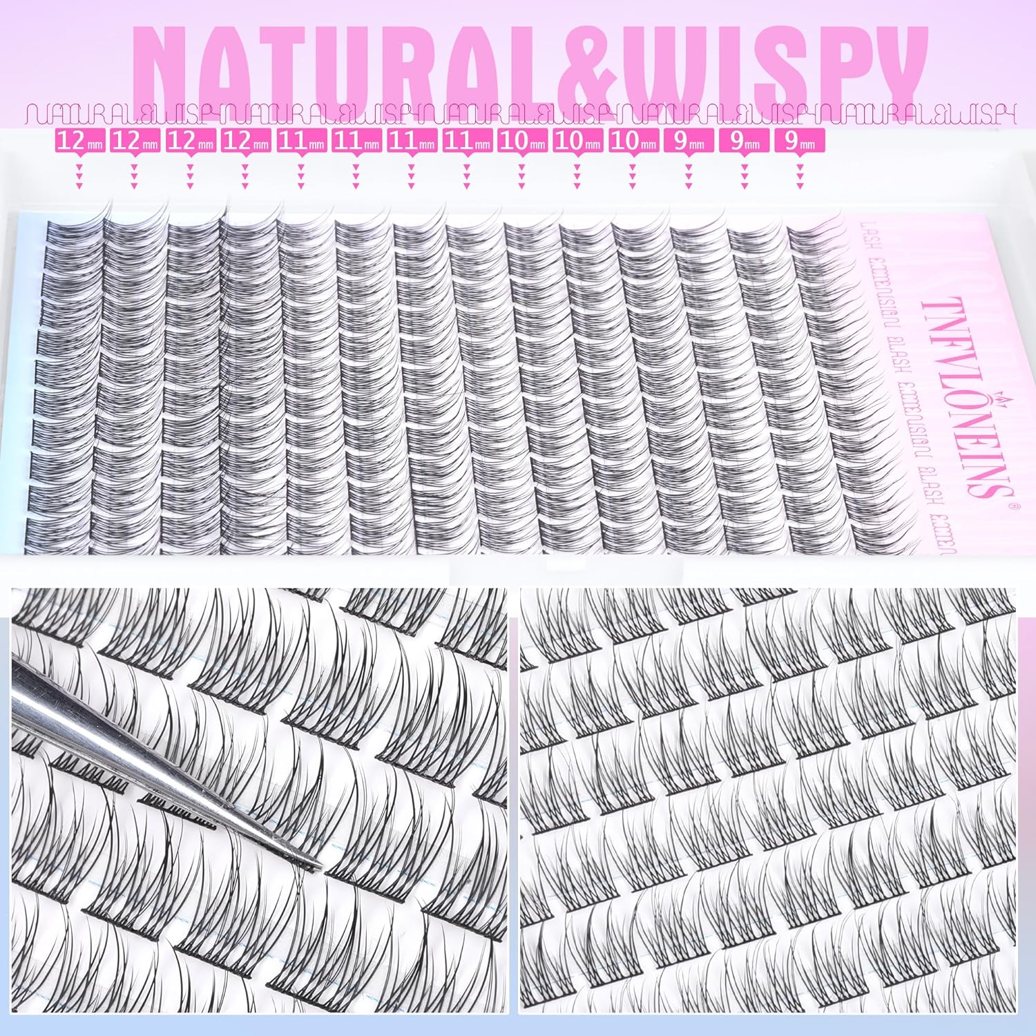 - Beginner Friendly: 9-12MM wispy cluster lashes are easy to apply; even you’re a fake eyelashes beginner. Cluster eyelashes can be worn according to the matching length. Enjoy lash extension at home, DIY your beauty.