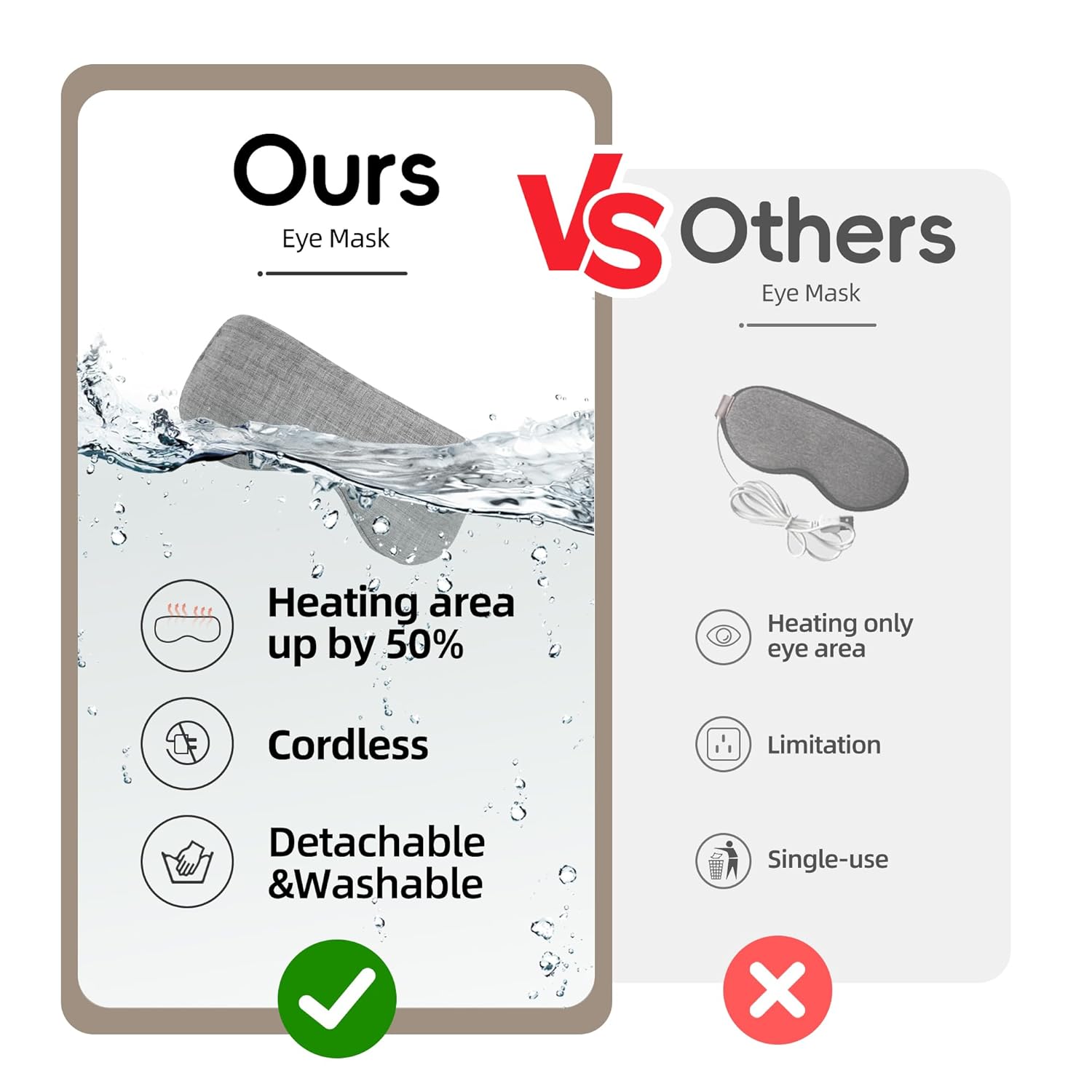 - Therapeutic Heated Eye Mask: Experience unparalleled relaxation and improved sleep with our warming eye mask. Enjoy the gentle warmth surrounding your eyes, fostering a serene environment ideal for relaxation