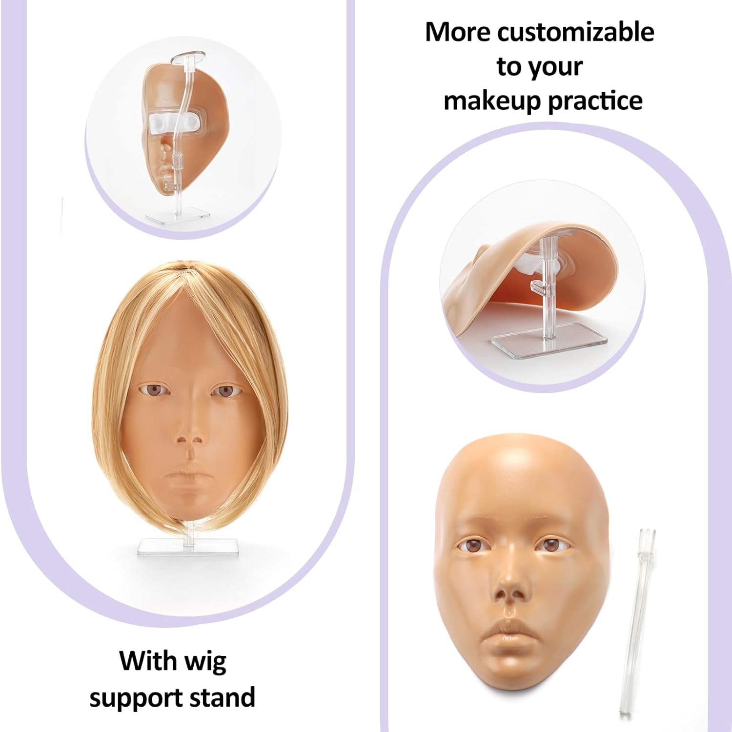 Makeup Practice Face, 2024 Upgrade 5D Makeup Mannequin Face Reusable Silicone Makeup Practice Face Board with Bracket, Come with Makeup remover & Concealer 3 Color & Makeup Bag Brown