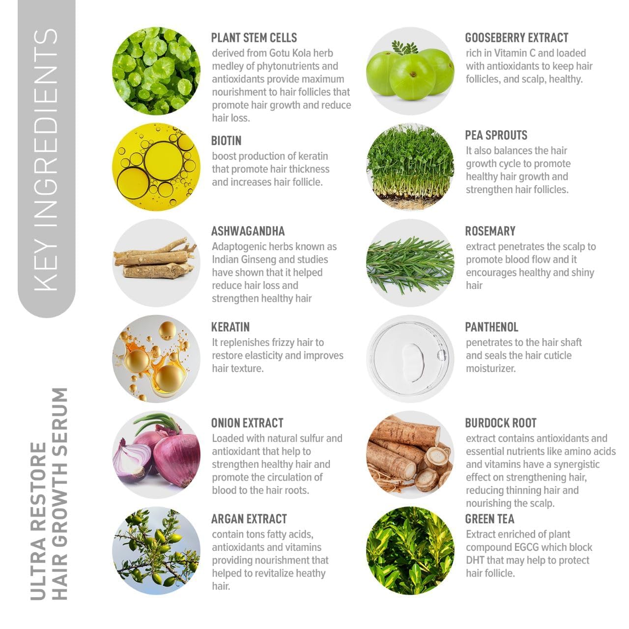 Ultra Restore Hair Growth Serum -Promote Fuller Hair Growth and Reduce Hair Loss, Nurtures Hair Follicle, Hydrates the Scalp, Detox Scalp -Stem Cells, Ashwagandha, Biotin, Keratin