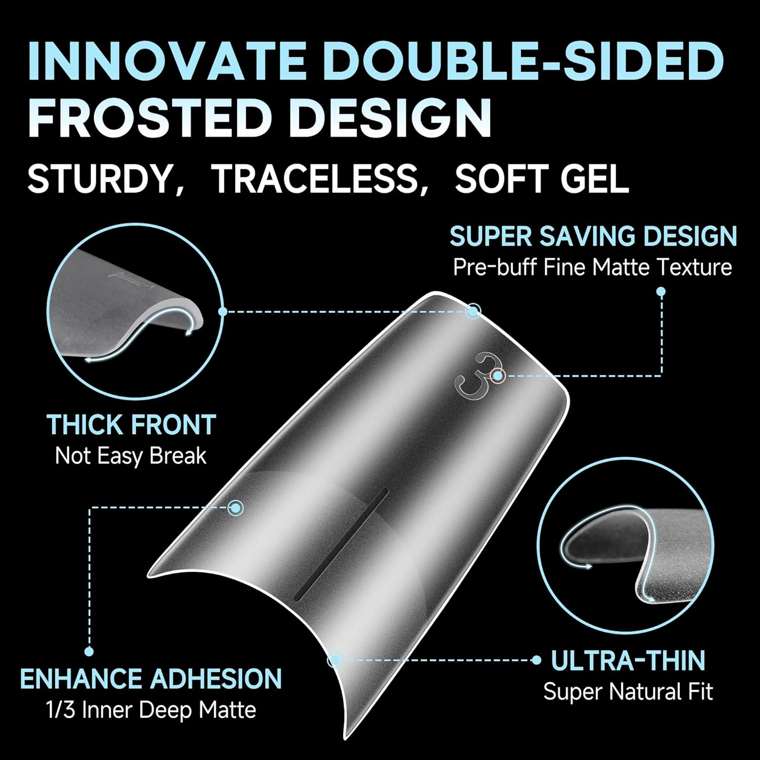 - NEWLY DOUBLE SIDE MATTE TEXTURE-Our medium coffin gel nails feature new double-sided matte nail tips design, no extra filing required! The outer wall makes it easier to apply nail polish and gives a glossy finish. The inner deep matte firmly adheres to the nail without worrying about the nail pop off easily. Easily get beauty that lasts 28+ days. We are committed to bringing you professional, efficient and safe nail care.