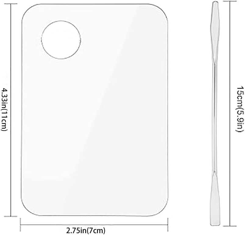 - Size: The Makeup Palette Tray is long enough to fit your hand, the size is 2.75 x 4.33inch / 7 x 11cm, Spatula length is 5.9inch / 15cm.